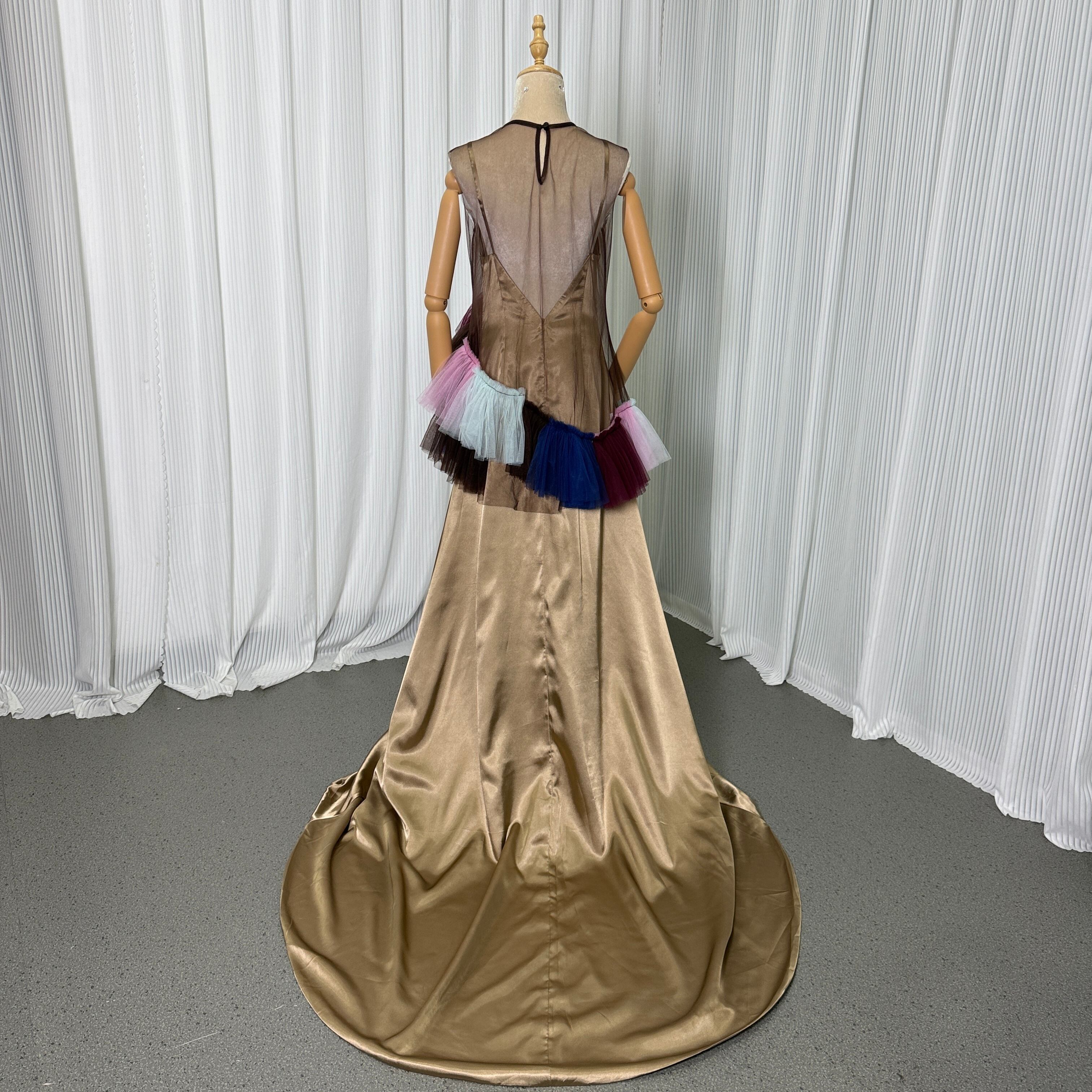 カラードレス レインボー トップス+スカート ソフトチュール ノースリーブ アシンメトリー風 +光沢サテンキャミソール ワンピース花嫁 前撮り