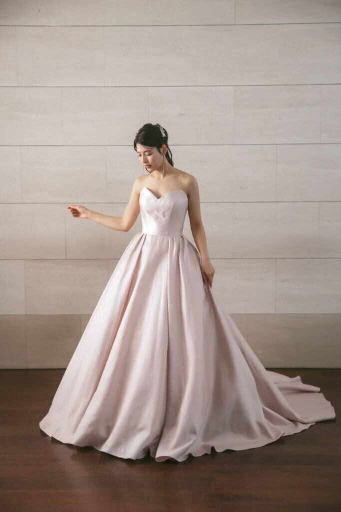 カラードレス ピンク ビスチェドレス 光沢サテン 華やかなトレーン 色直し 花嫁