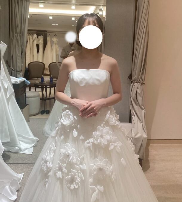 ウエディングドレス オフホワイト 3D立体レース刺繍 ソフトチュール 華やかなトレーン ビスチェドレス 結婚式