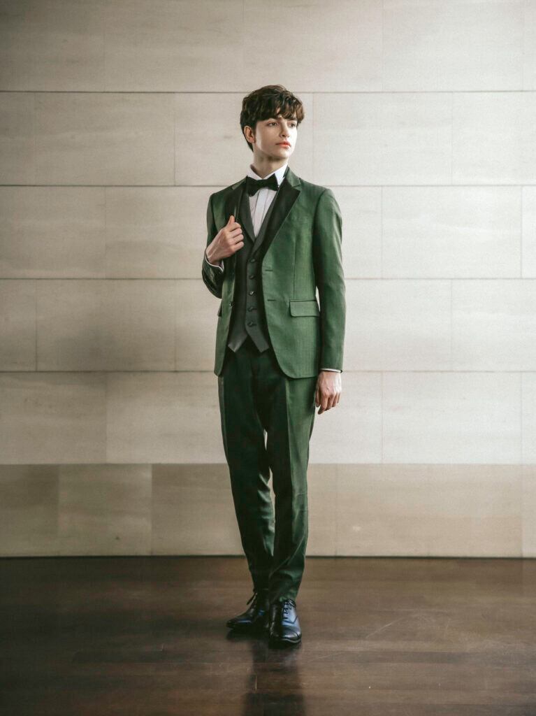 送料無料! タキシード 深緑 ジャケット、ベスト、パンツの3点セット 色直し 結婚式