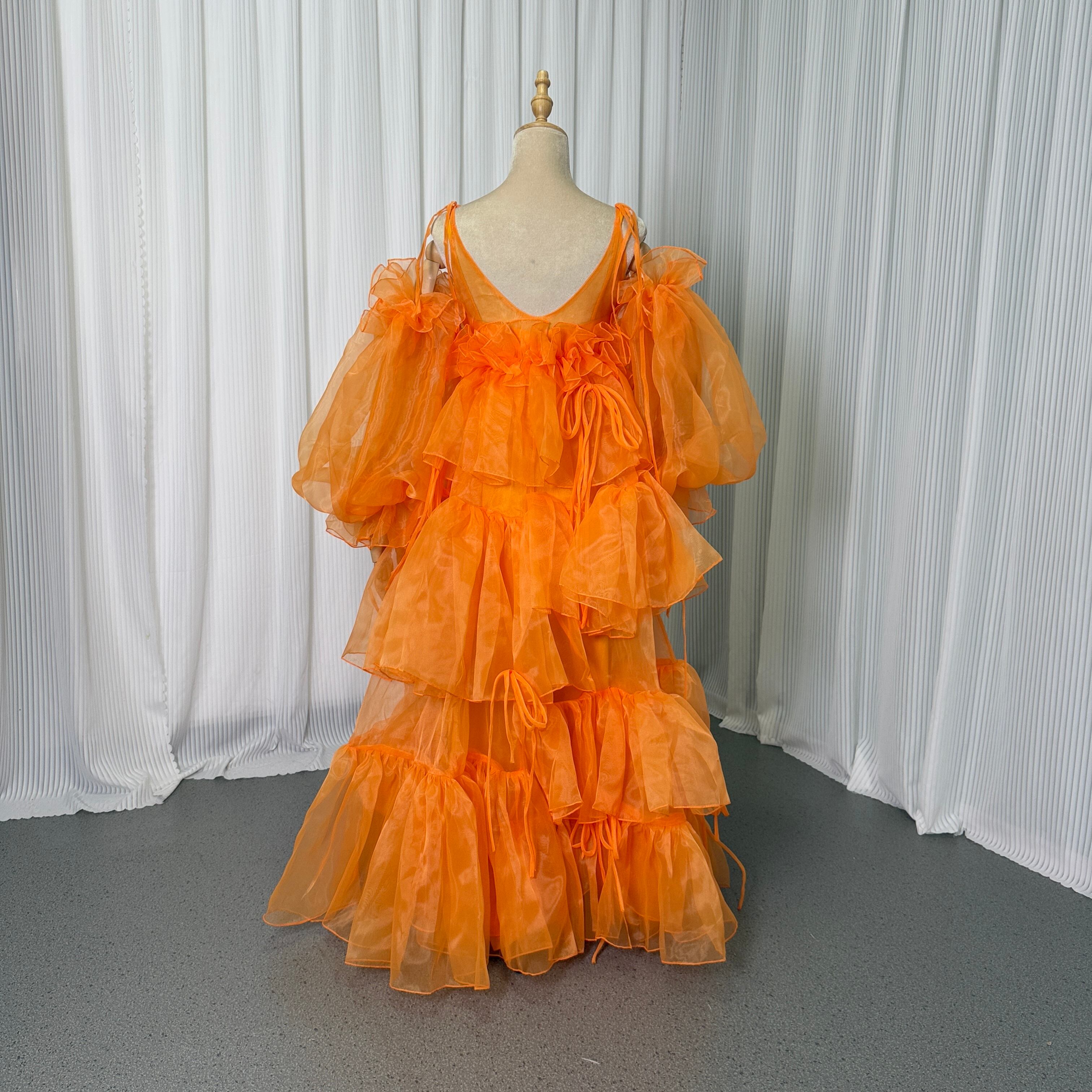 カラードレス オレンジ 上質オーガンジー オーバードレス +キャミソール パーティードレス +パフスリーブ 花嫁 前撮り