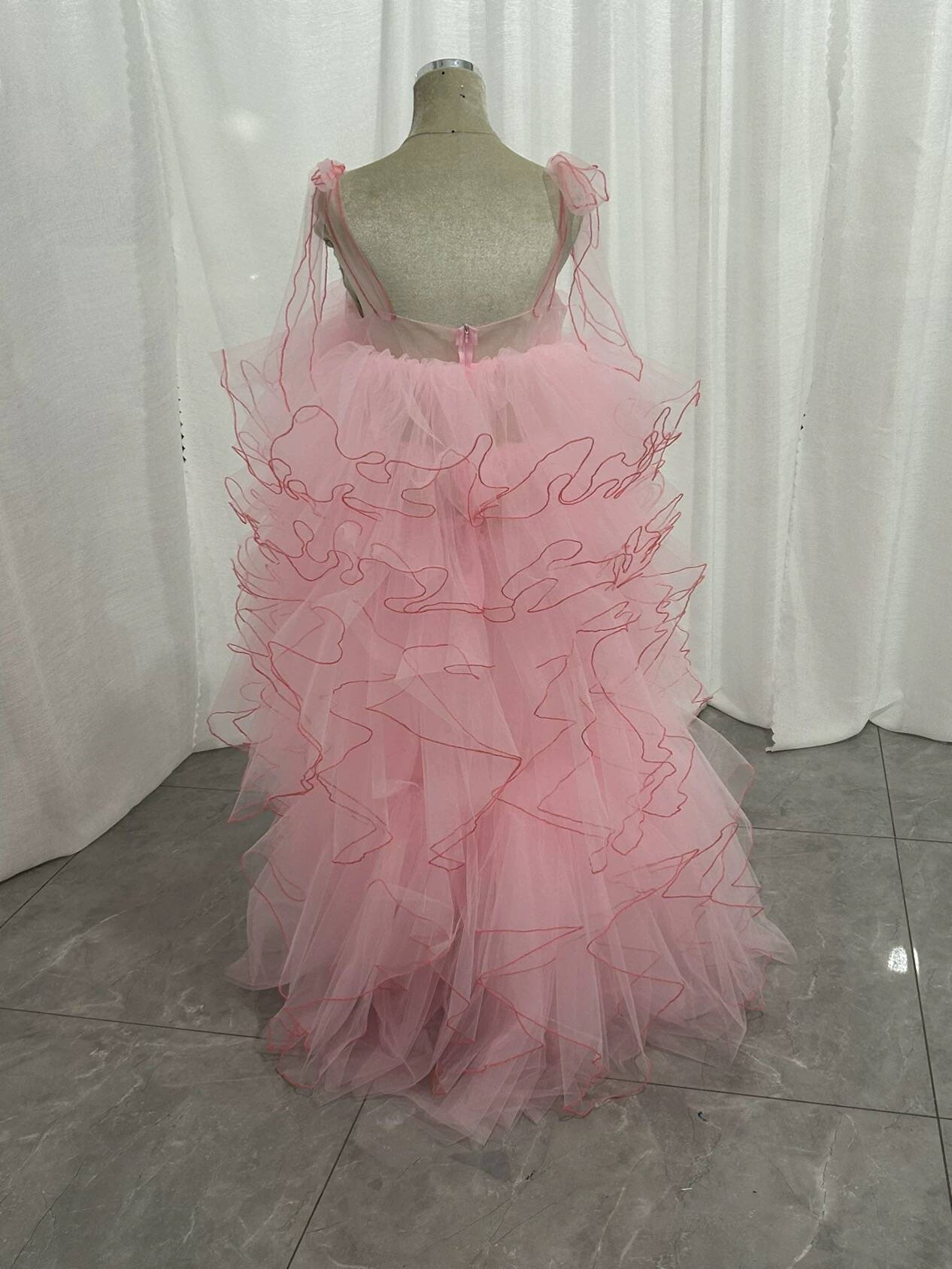 カラードレス ピンク アシンメトリー風 キャミソール ソフトチュール 可愛い 色直し オーバードレス 花嫁 前撮り