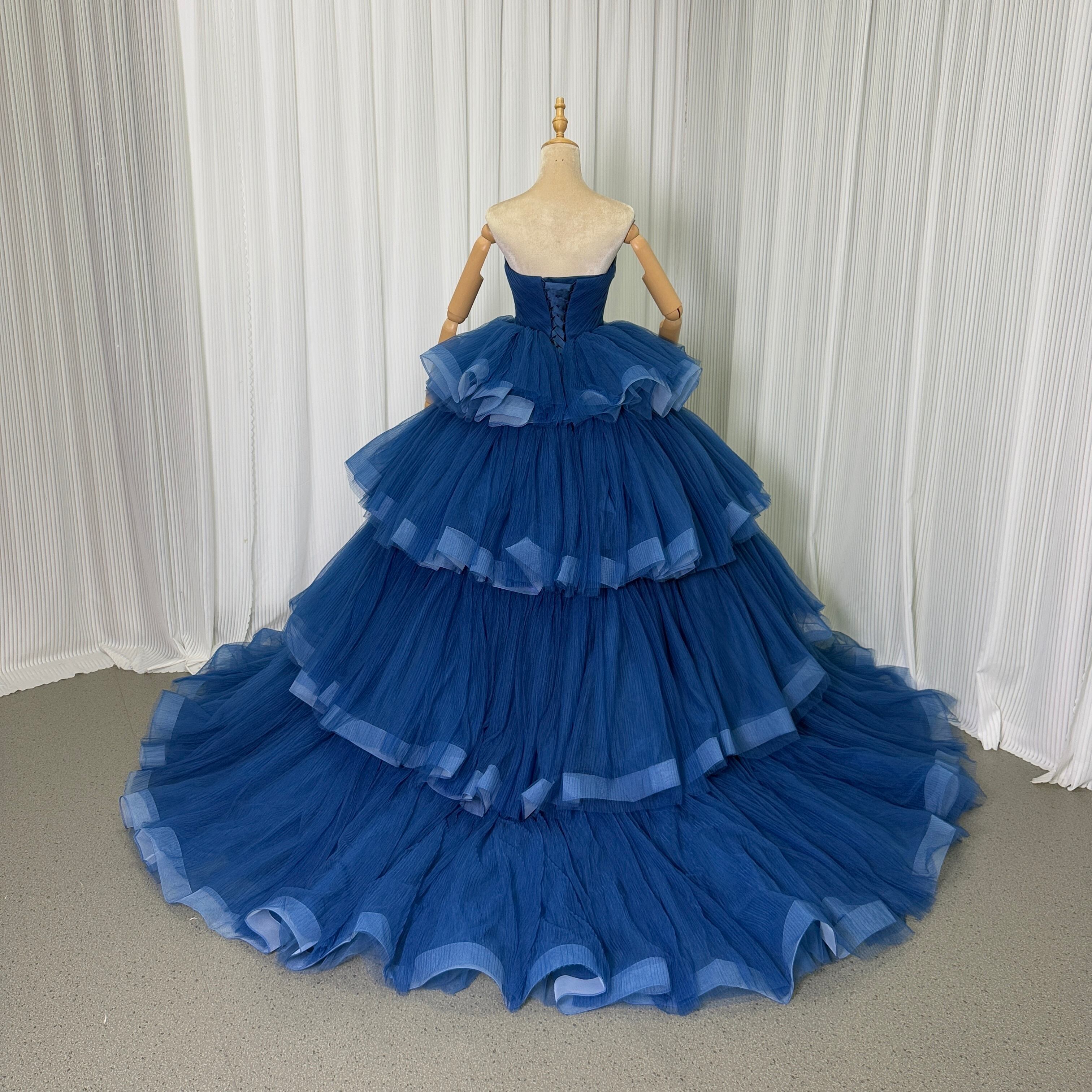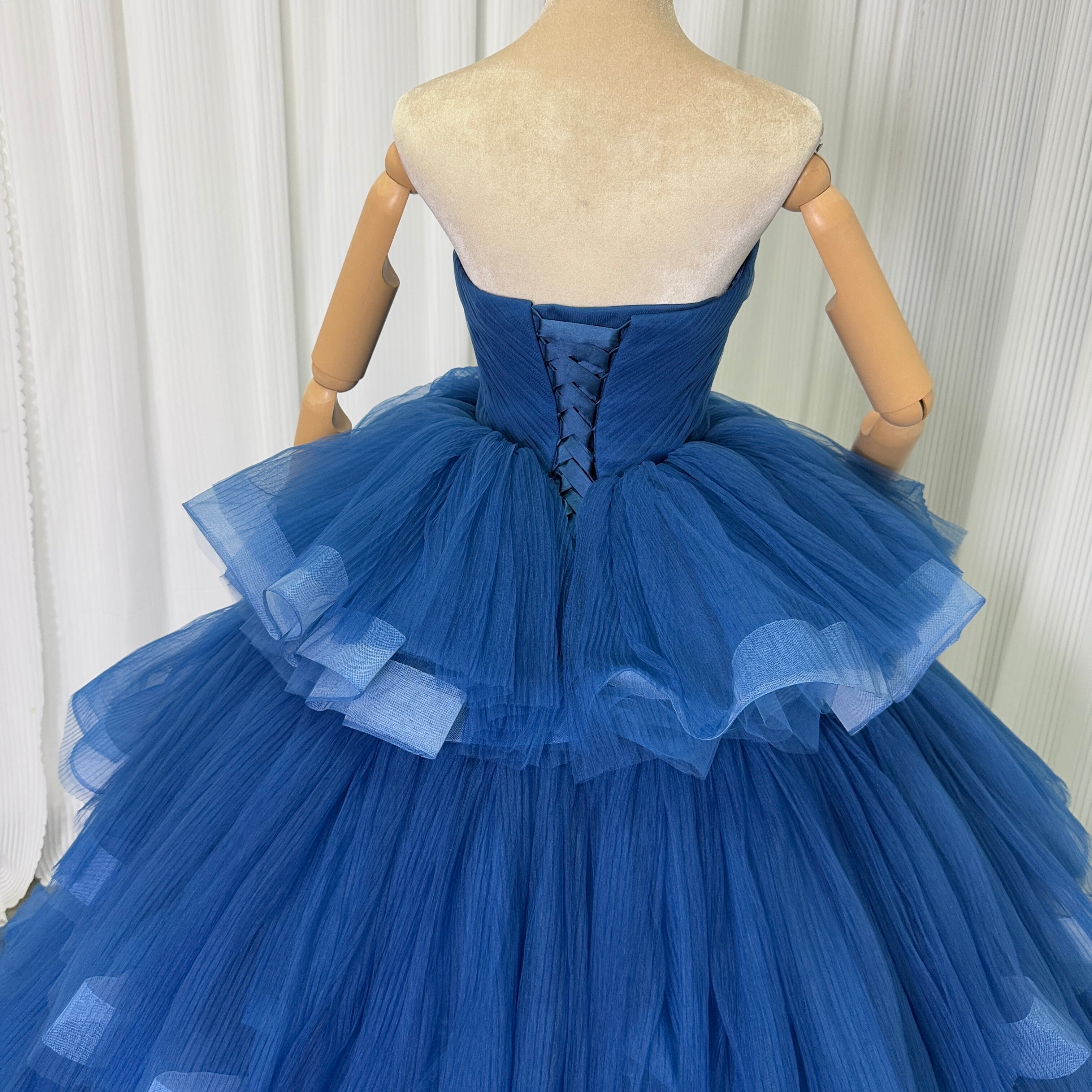 カラードレス ジュエルネイビー ソフトチュール 編み上げ スリット ソフトチュール ティアードのドレス ビスチェドレス 花嫁
