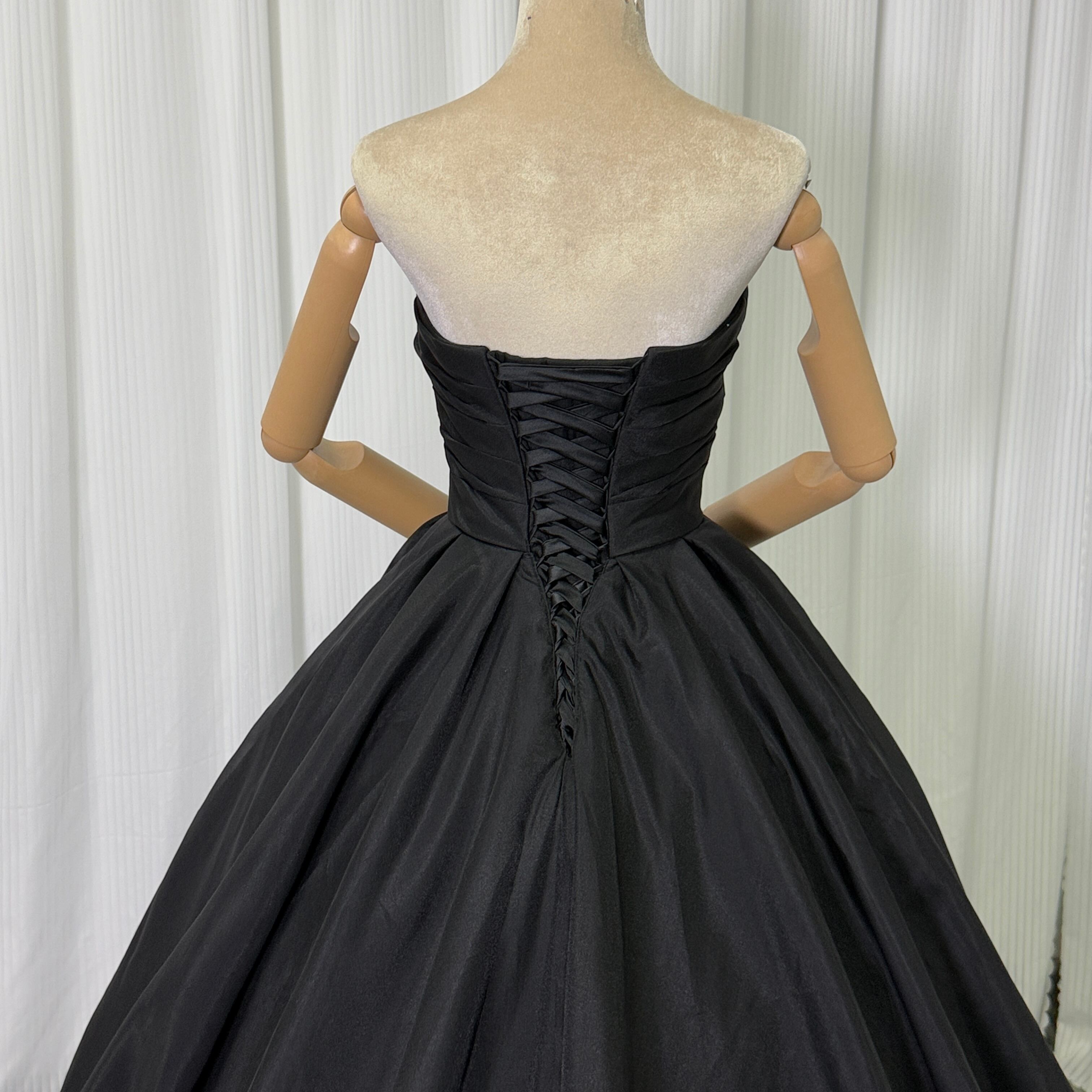 カラードレス ブラック 楊柳オーガンジー スリット 編み上げ ビスチェドレス 華やかなトレーン 花嫁