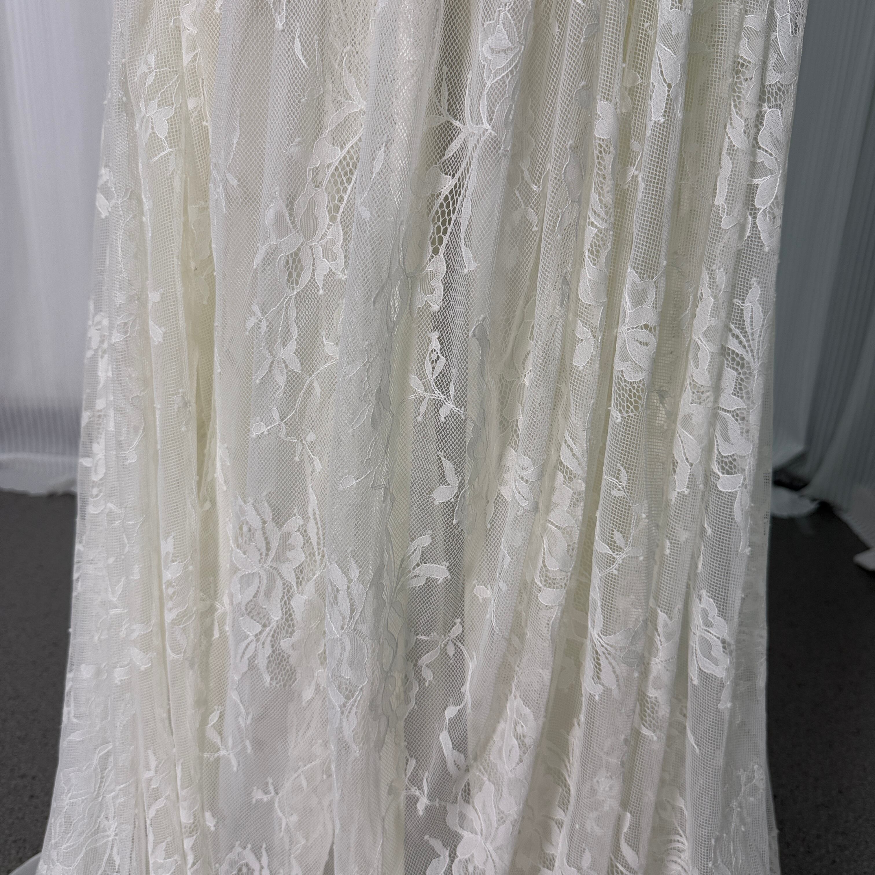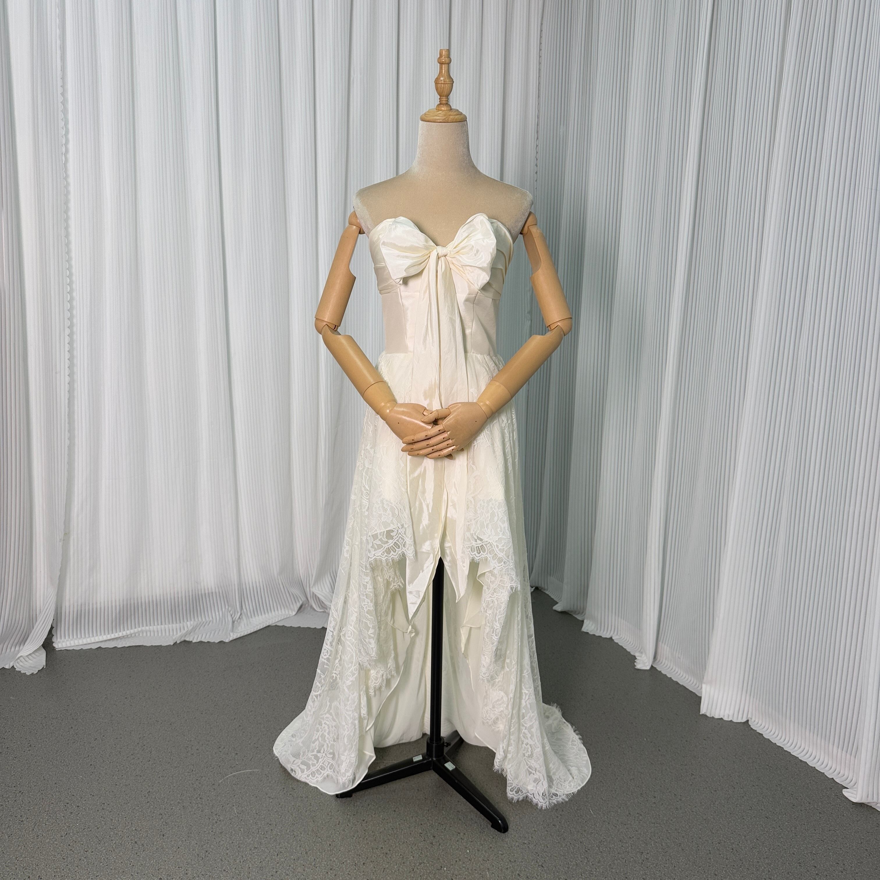 パーティードレス アイボリー 咲き誇る透け花レース フィッシュテール ベアトップ シルクタフタ 前撮り