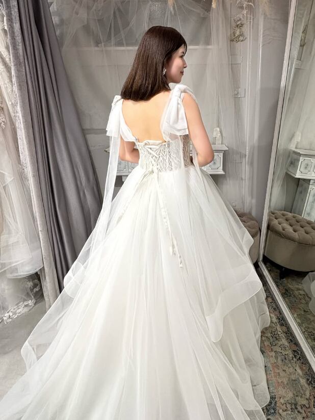 ウエディングドレス オフホワイト オンショルダードレス クラシカル ソフトチュール 披露宴/結婚式