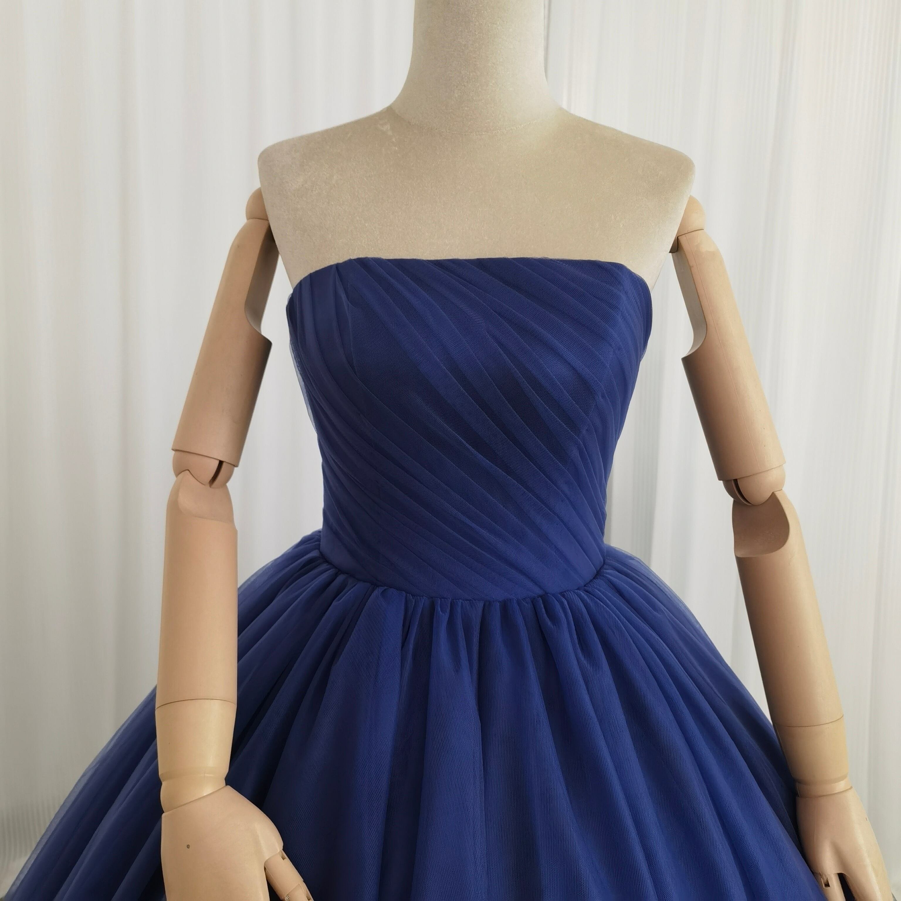 カラードレス ネイビー 取り外し可能なオフショルダー ソフトチュール 編み上げ 華やかなトレーン もこもこドレス グラデーションドレス 結婚式