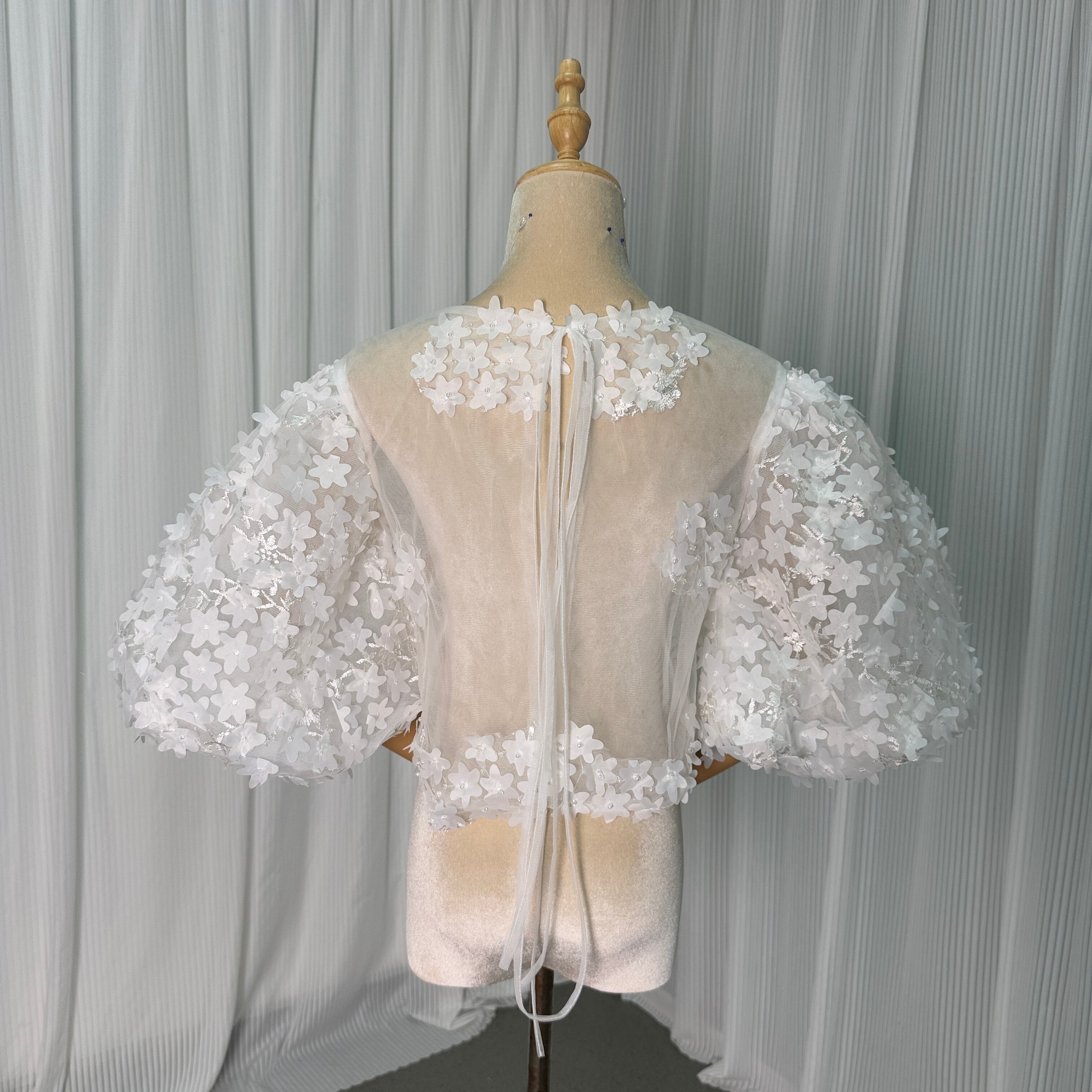 送料無料! トップス 花モチーフ フレア袖 編み上げ ラウンドネック 結婚式