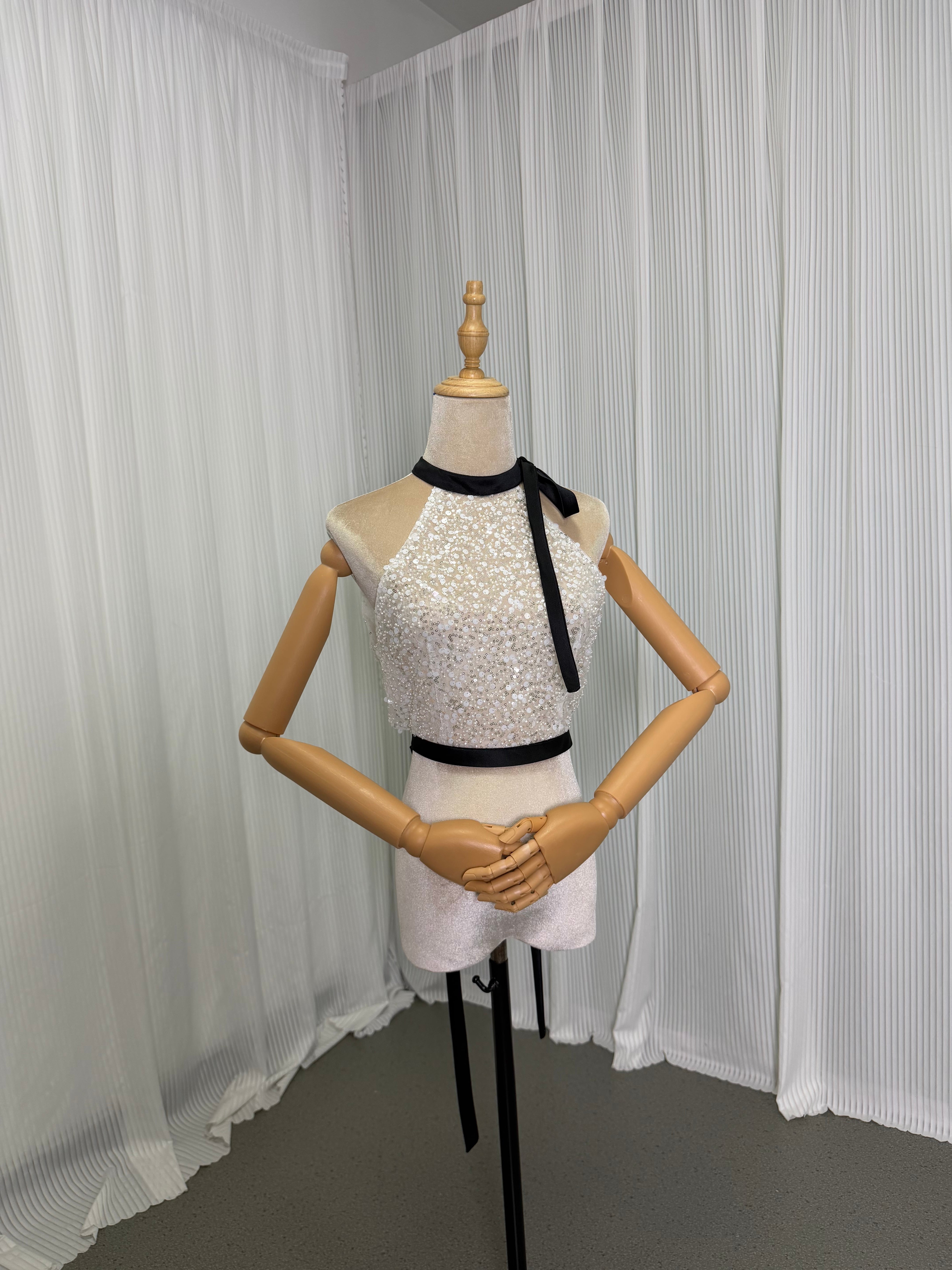 ボレロ サッシュベルト オフホワイト ホルターネック ノースリーブ パール キラキラスパンコール 花嫁 前撮り