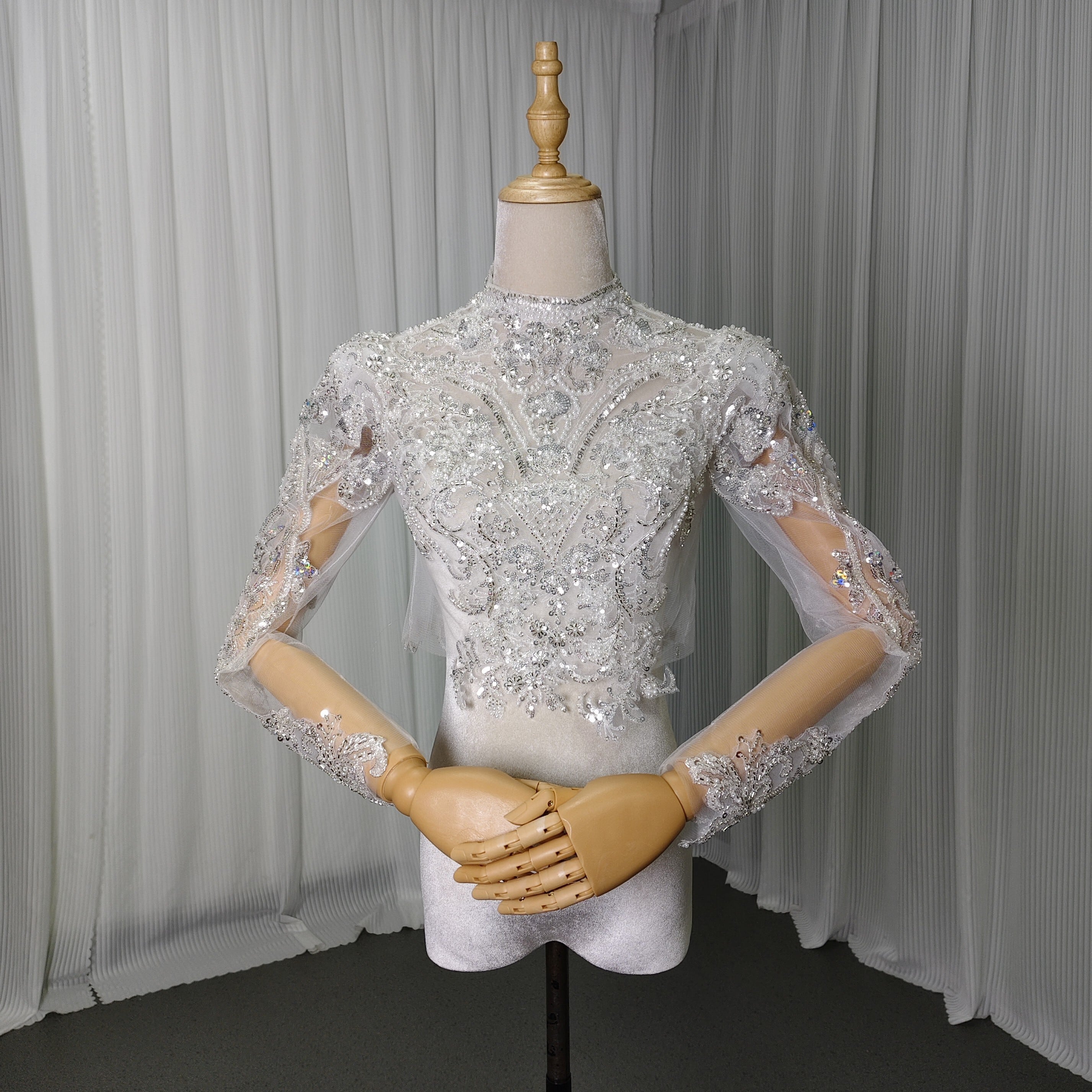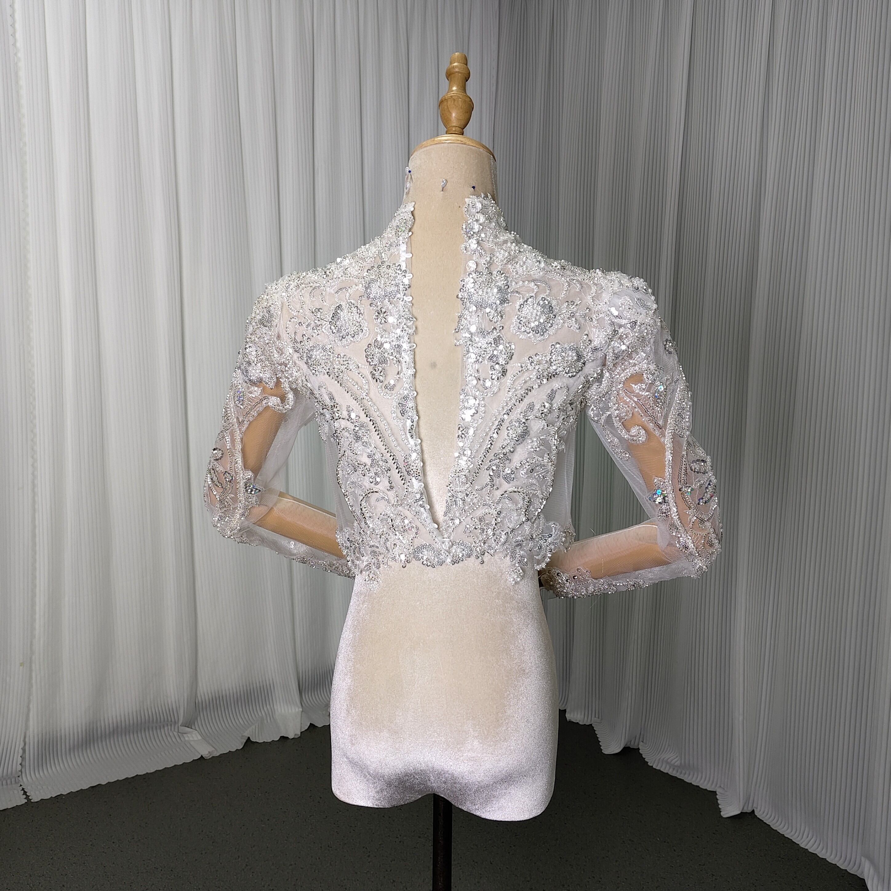 ボレロ 幻想的な輝きトップス 手作珠繍 立体ショルダー ホワイト くるみボタン ロングスリーブ 花嫁 前撮り
