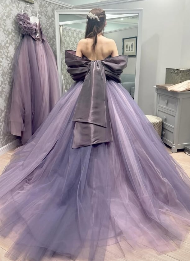 カラードレス パープル ふっくら柔らかなバックリボン ソフトチュール 華やかなトレーン 花嫁 前撮り