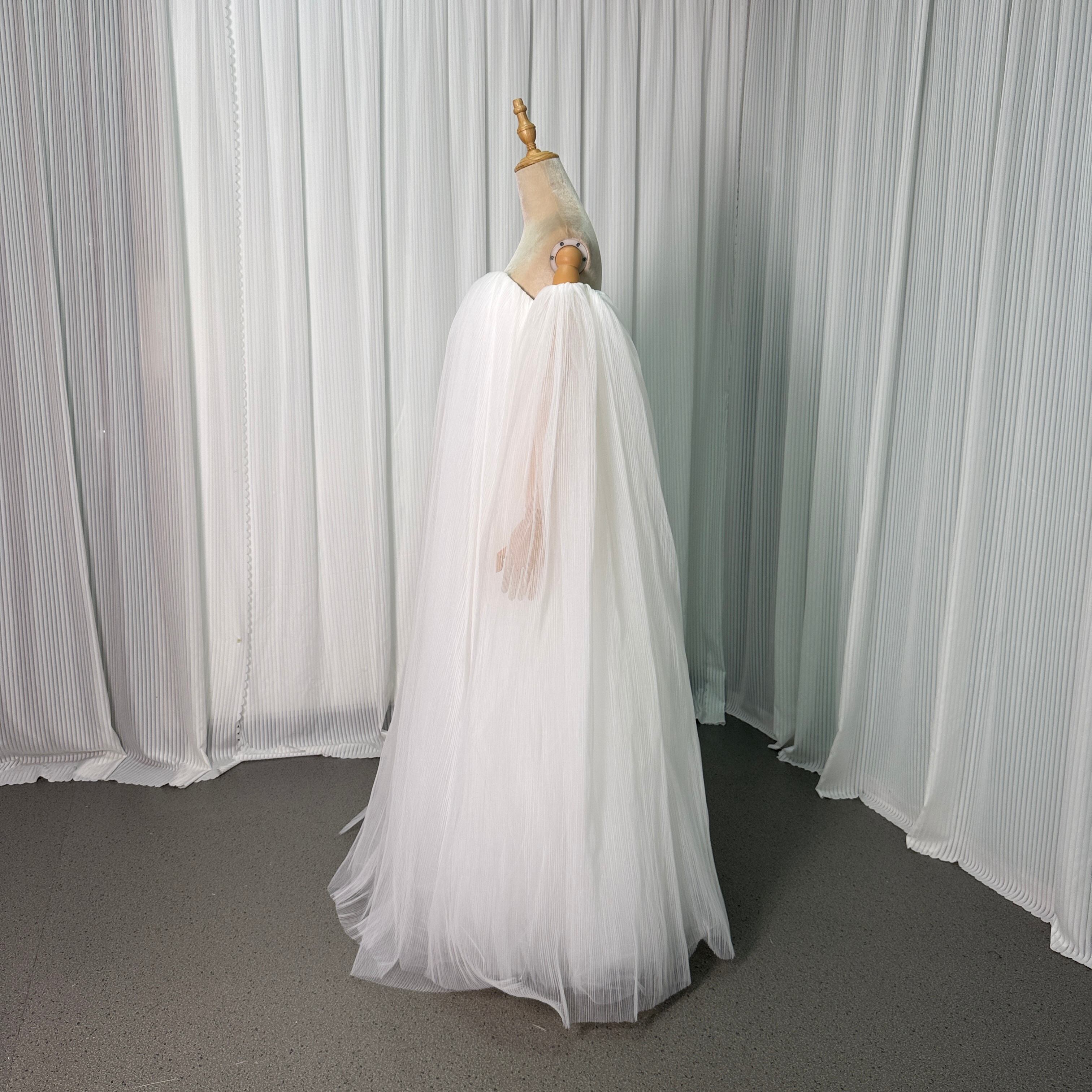 ウエディングドレス オフホワイト ソフトチュール 取り外し可能な付け袖 スレンダーライン ロング 花嫁 前撮り