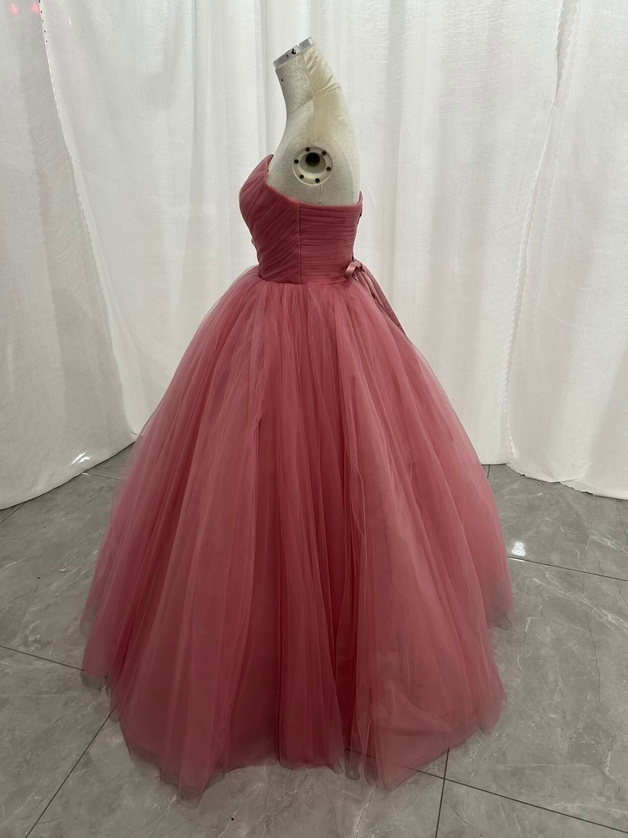 カラードレス くすみピンク 韓国風ドレス もこもこドレス 編み上げ サッシュベルト 柔らかく重ねたチュールスカート 結婚式