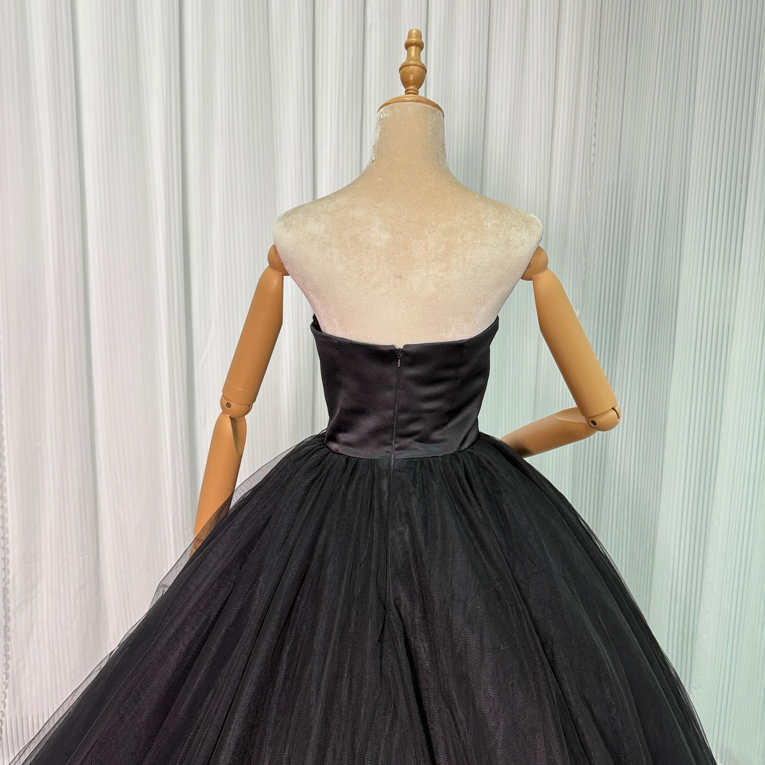 カラードレス ブラック ビスチェドレス 華やかなトレーン ファスナー 花嫁 演奏会/音楽会