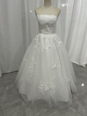 実例写真! ウエディングドレス オフホワイト ツーピース 繊細なレース ロング ソフトチュール ブライダル