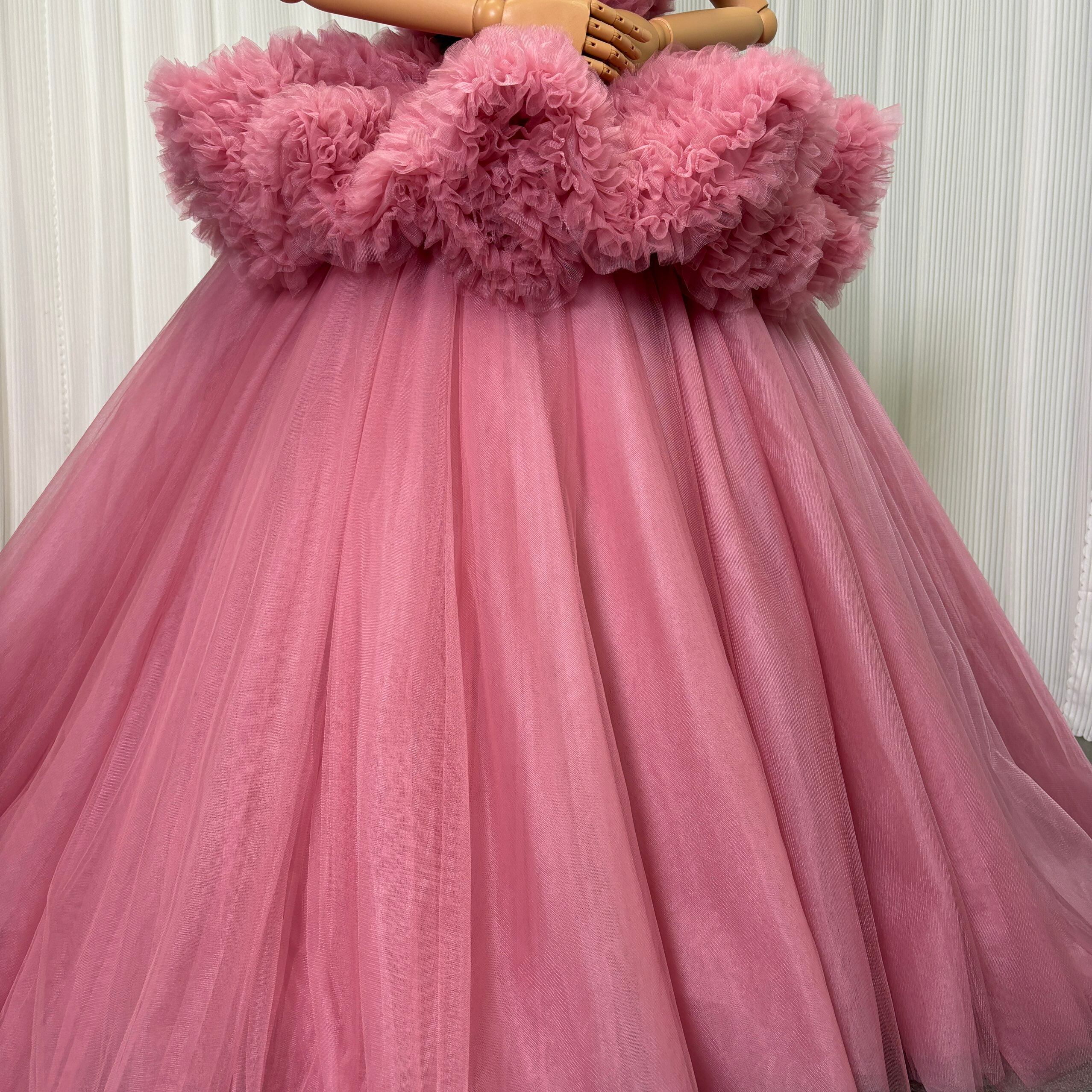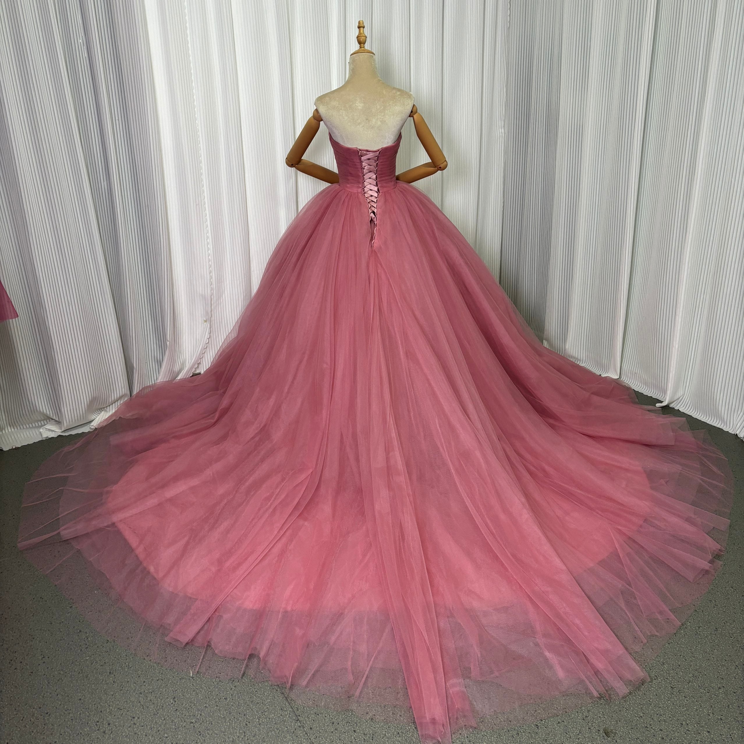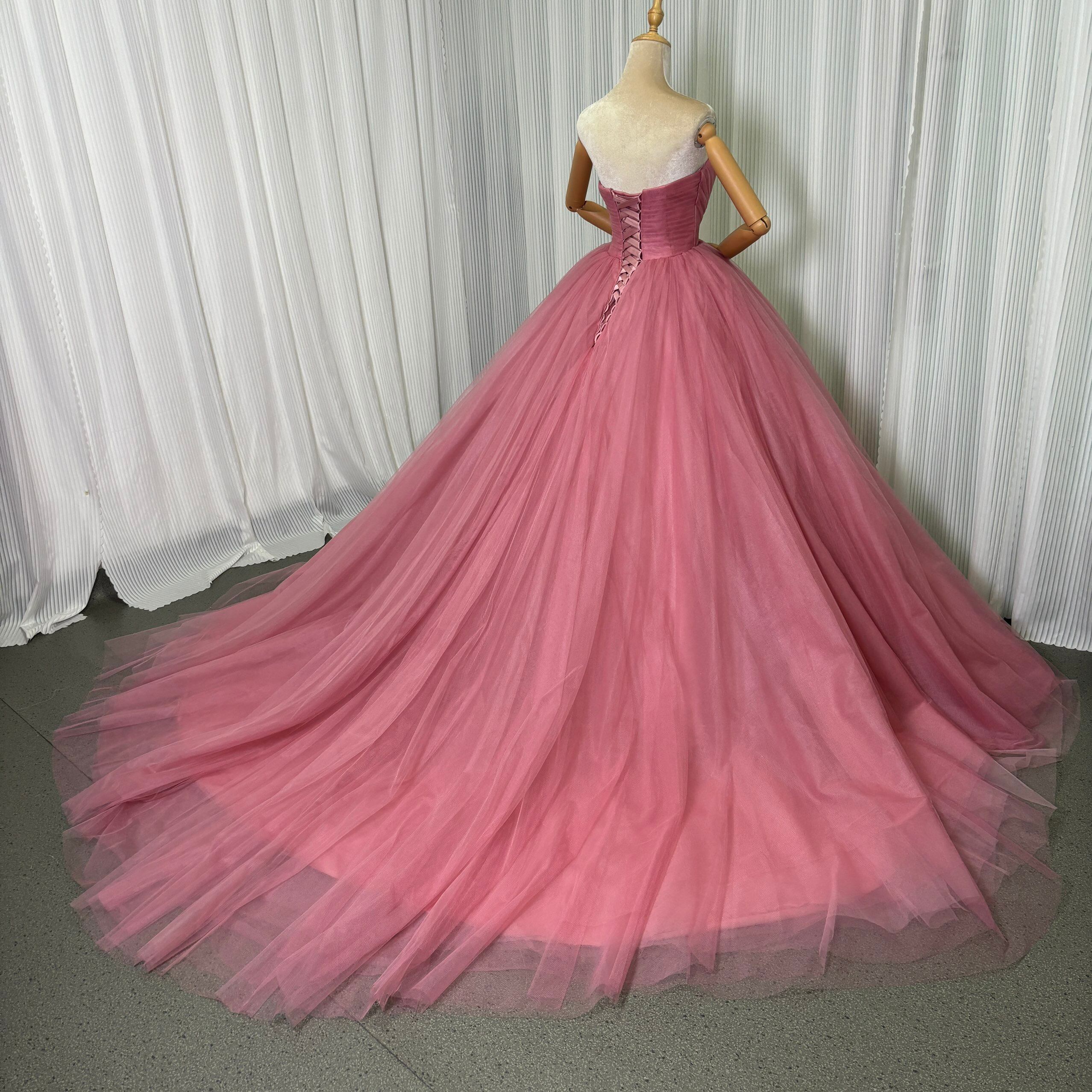 カラードレス くすみピンク 韓国風ドレス 取り外し可能なトップス 編み上げ 華やかなトレーン ビスチェドレス 披露宴/結婚式