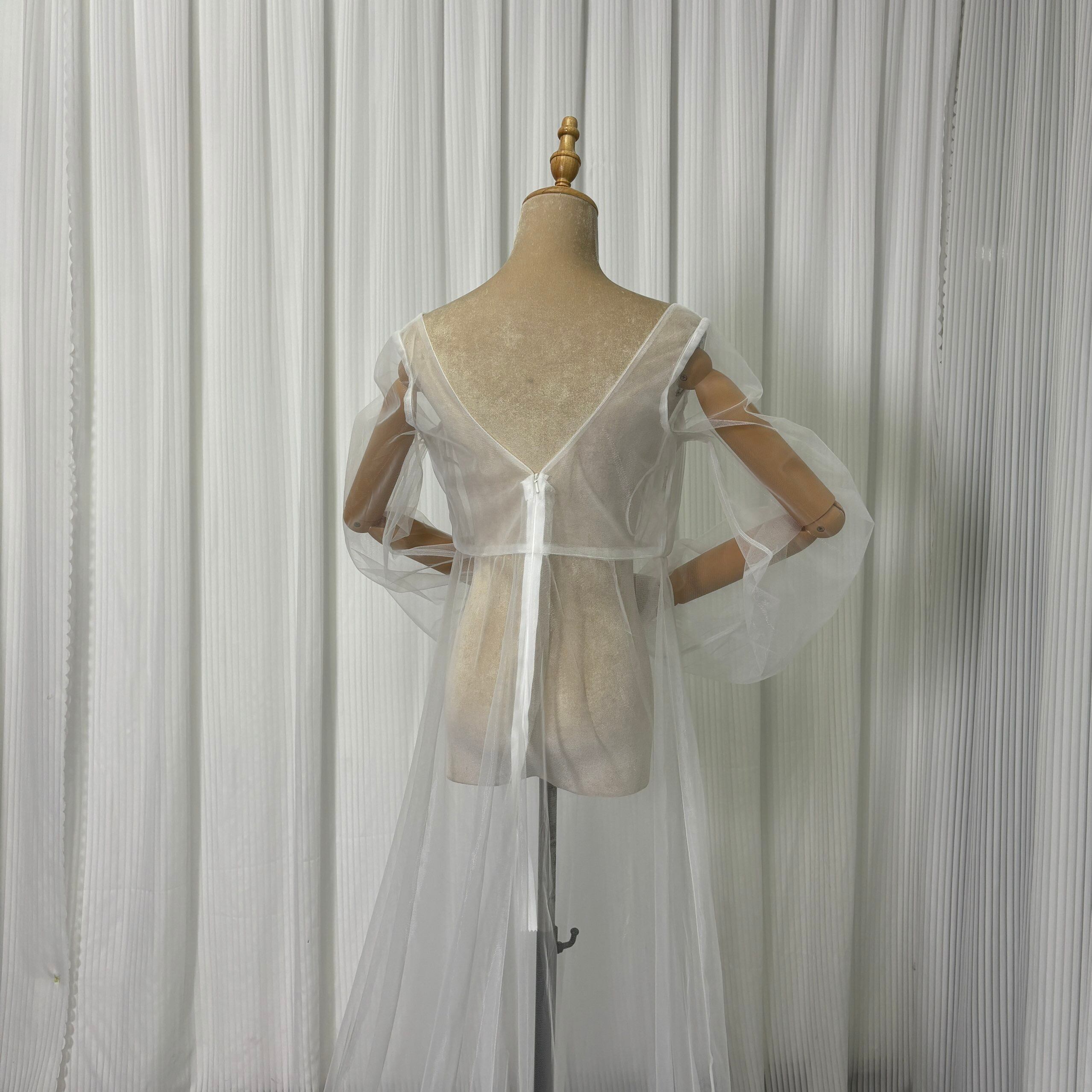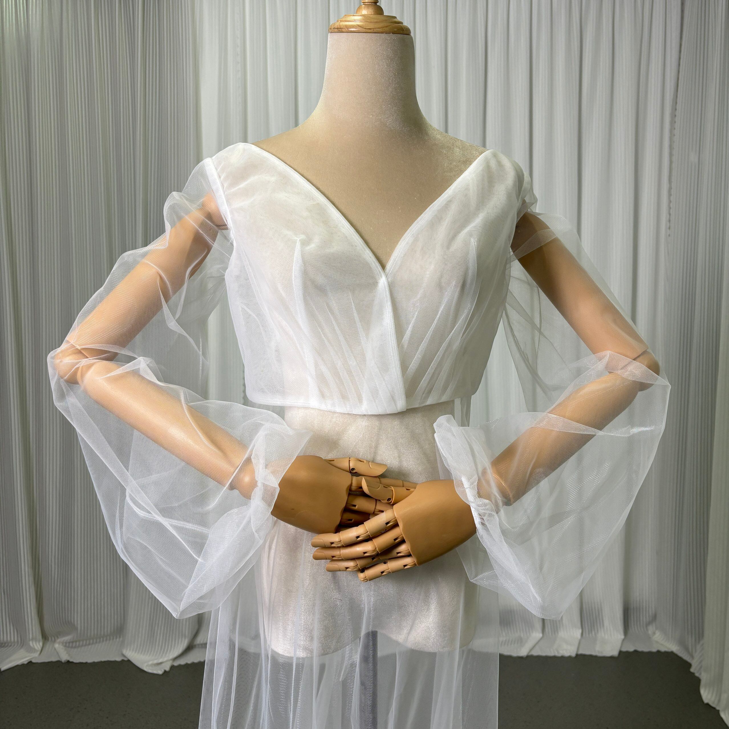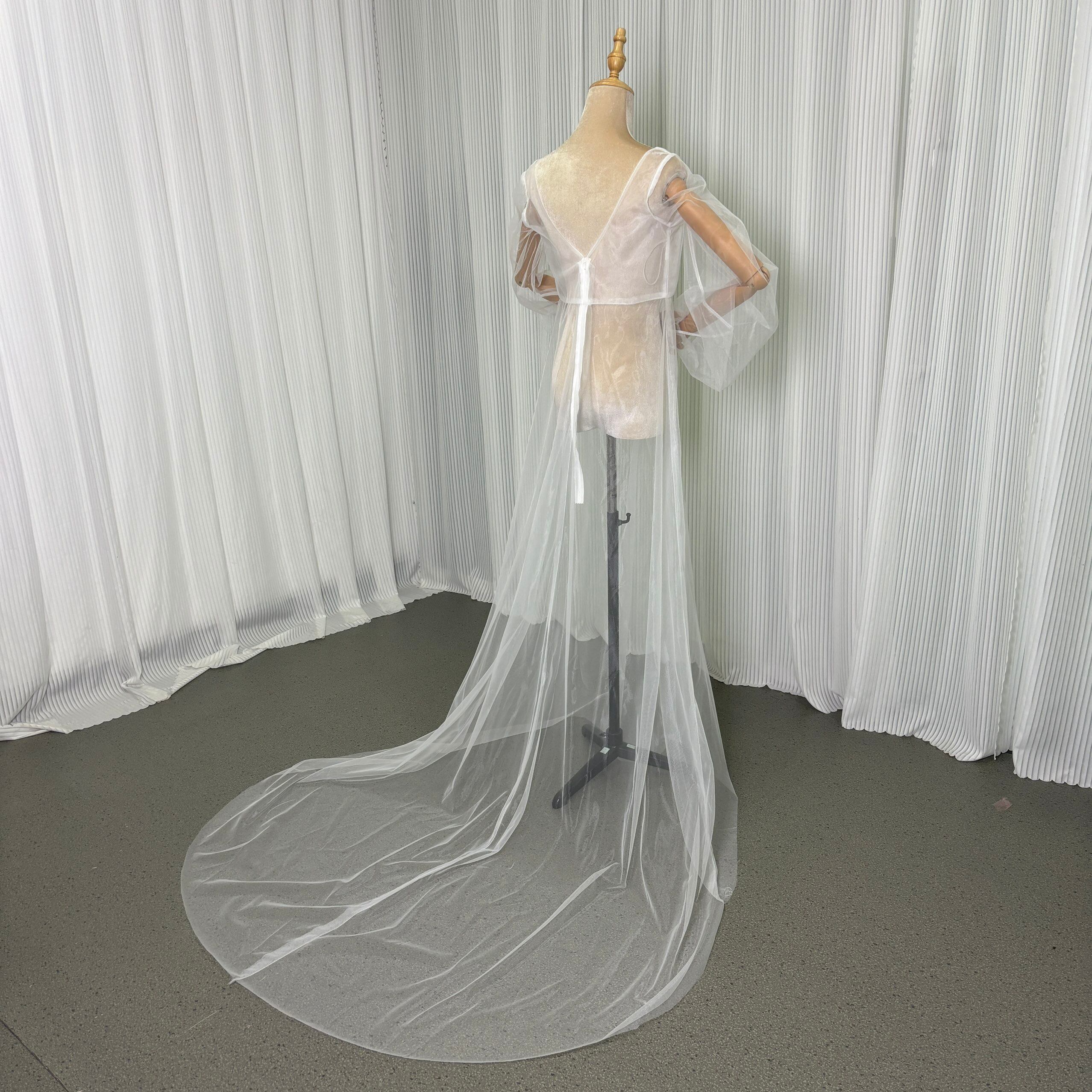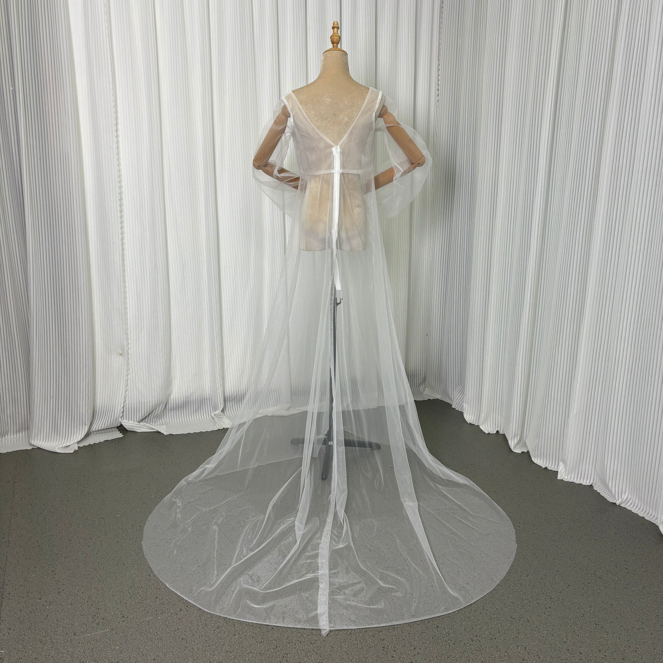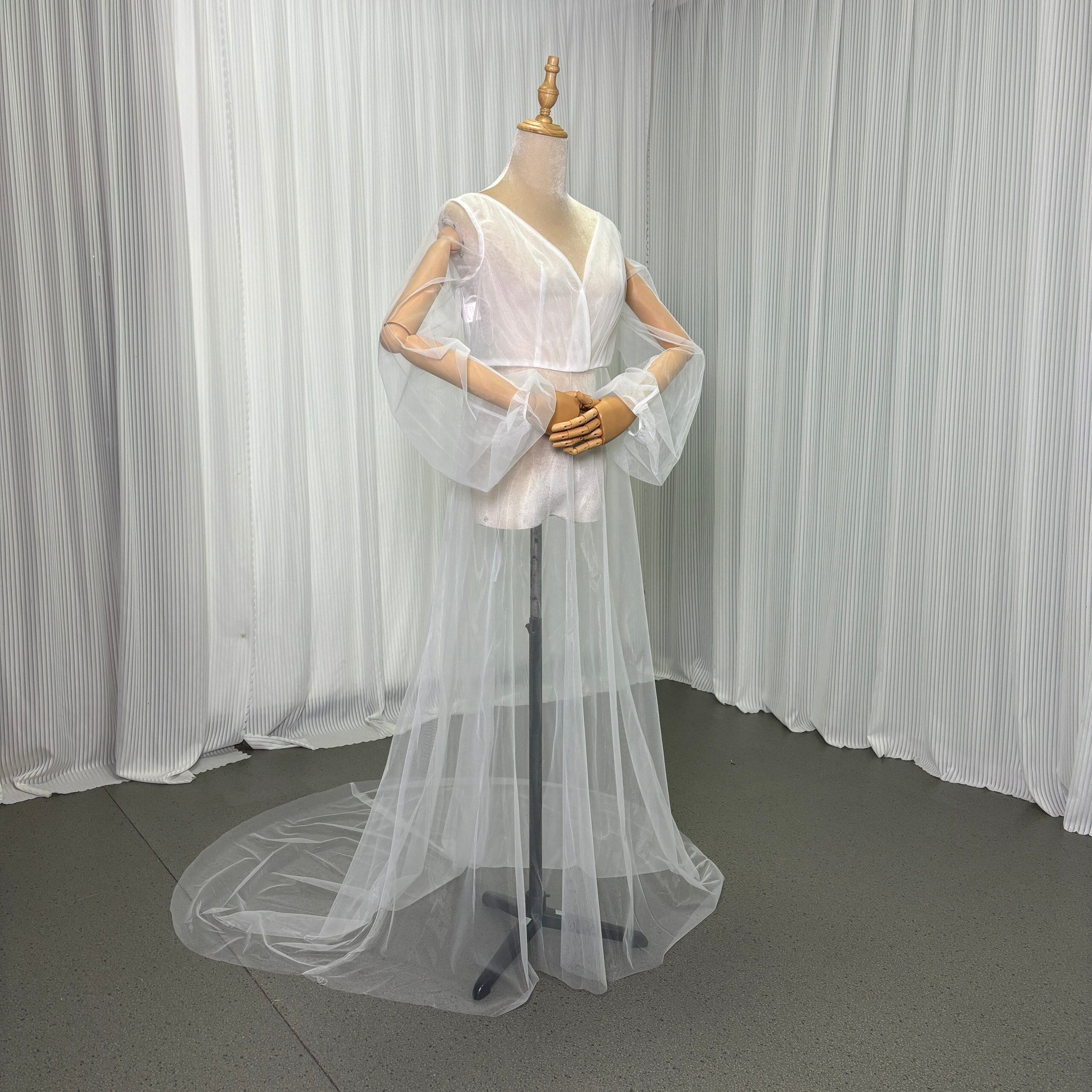オーバードレス オフホワイト ロングスリーブ スリット Vネック トレーン 花嫁 前撮り