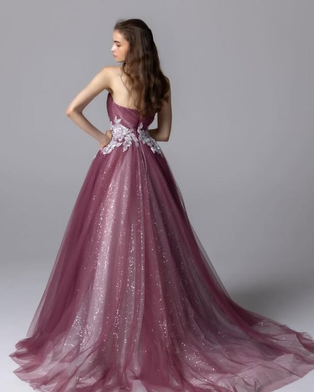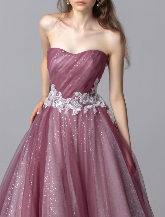 カラードレス くすみピンク シークインチュール 裾に繊細レースをあしらった ファスナー 華やかなトレーン 結婚式 前撮り