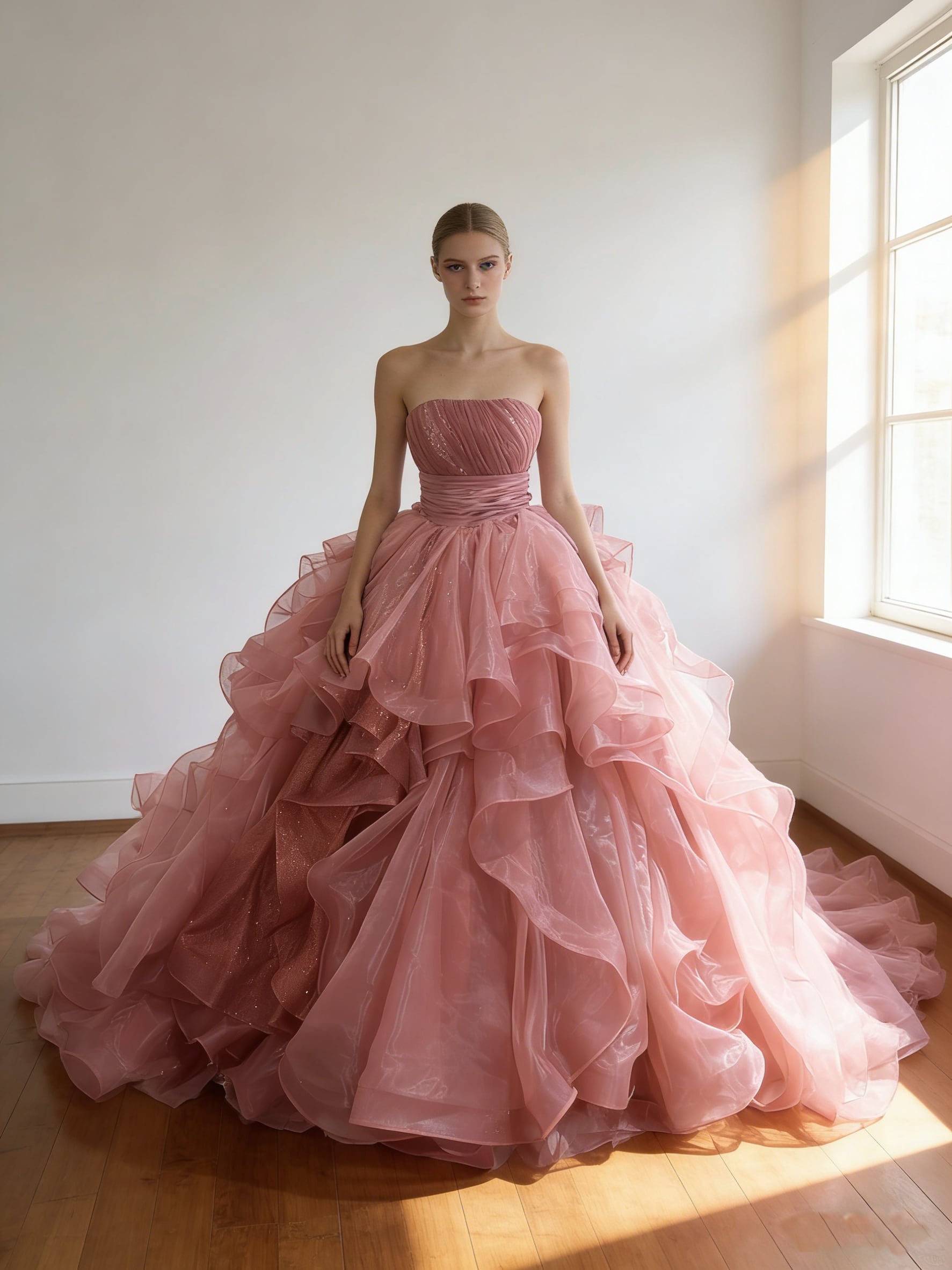 カラードレス ピンク シークインチュール ビスチェドレス アシンメトリー風 上質オーガンジー ブライダル