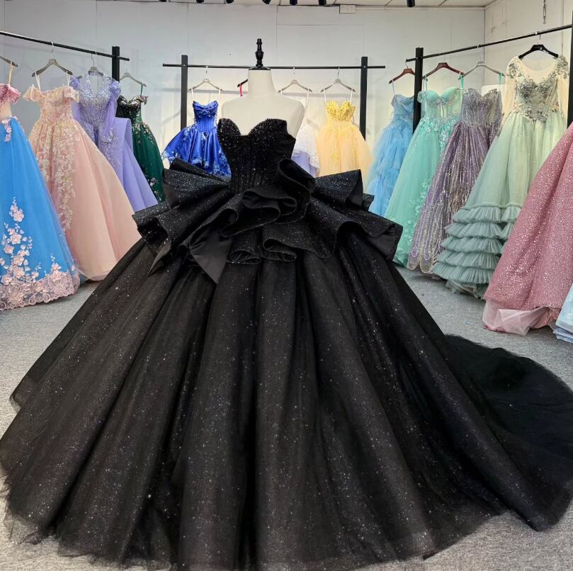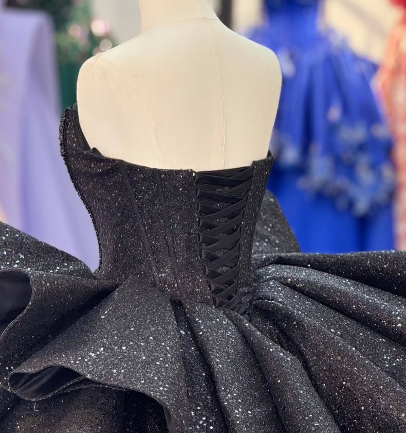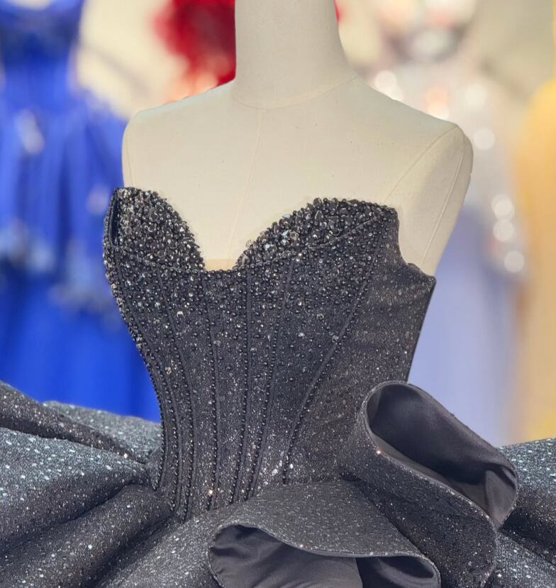 カラードレス ブラック ビスチェドレス シークインチュール 華やかなトレーン 韓国風ドレス パール ブライダル