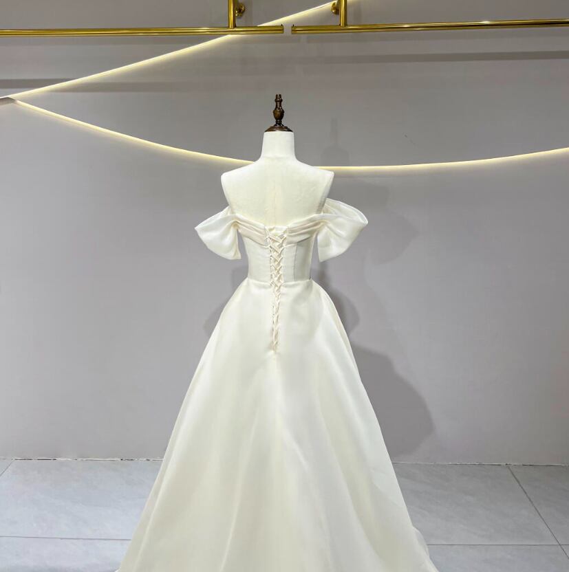 ウエディングドレス オフホワイト オフショルダー 編み上げ 上質オーガンジー 華やかなトレーン 結婚式