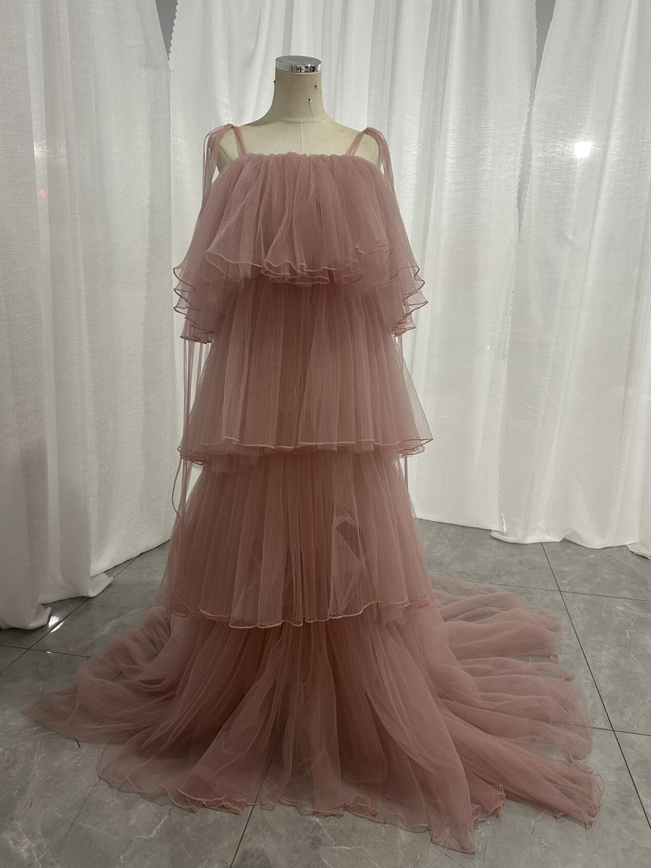 送料無料!オーバードレス のみ くすみピンク キャミソール ソフトチュール 色直し 短トレーン 花嫁 前撮り