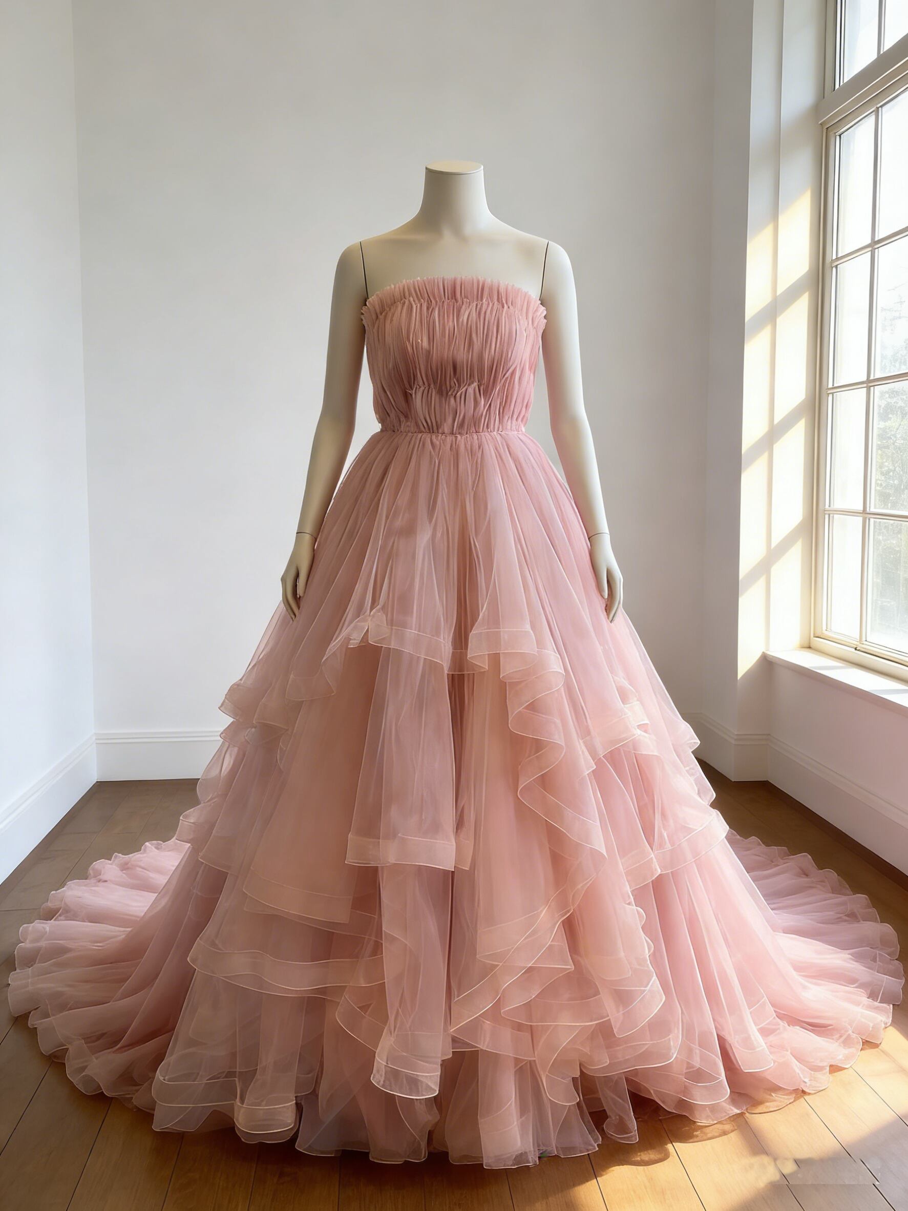 カラードレス ピンク アシンメトリー風 スリット ビスチェドレス ソフトチュール 華やかなトレーン 結婚式 前撮り