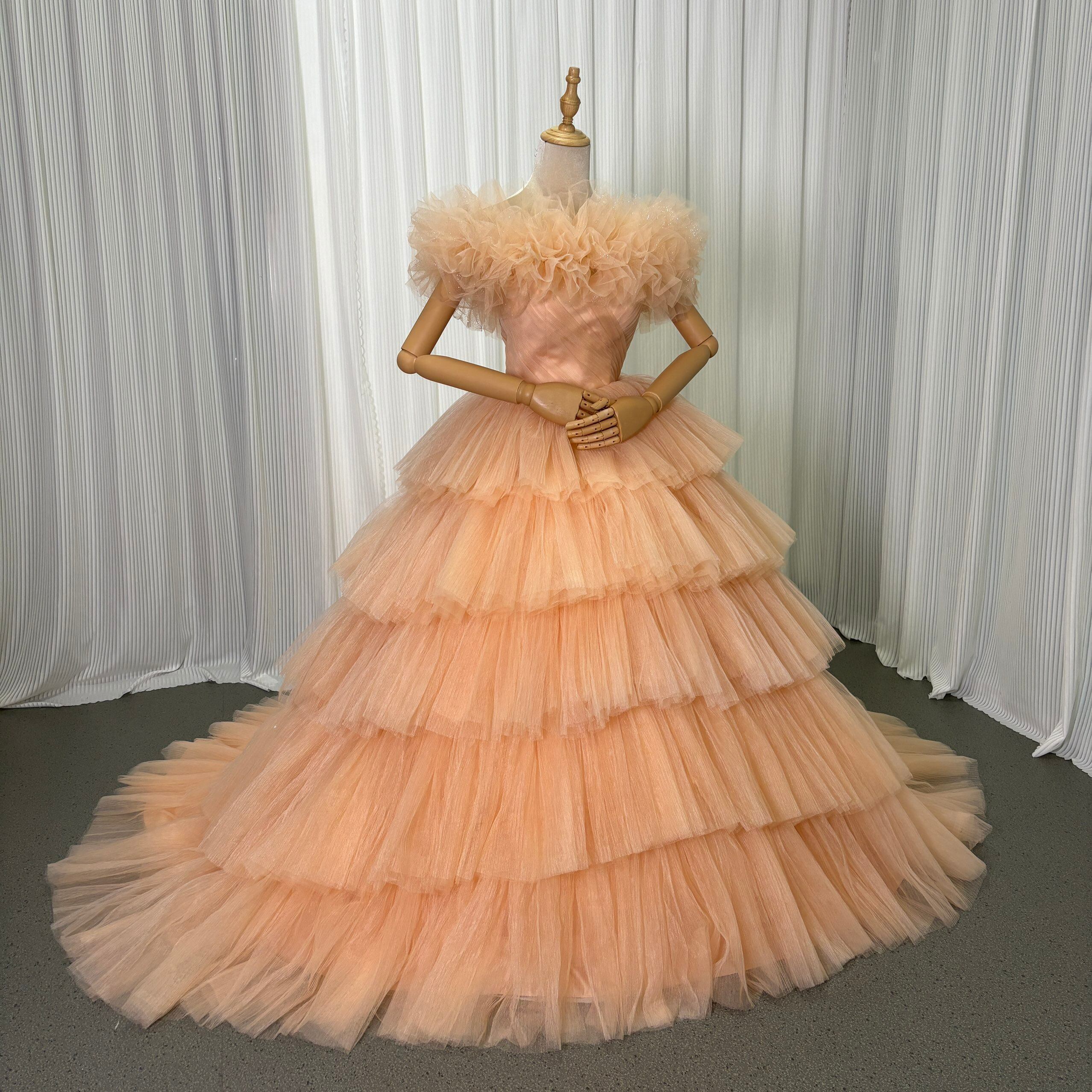 実例写真!カラードレス オレンジ 取り外し可能なオフショルダー 編み上げ スリット ロングトレーン 結婚式