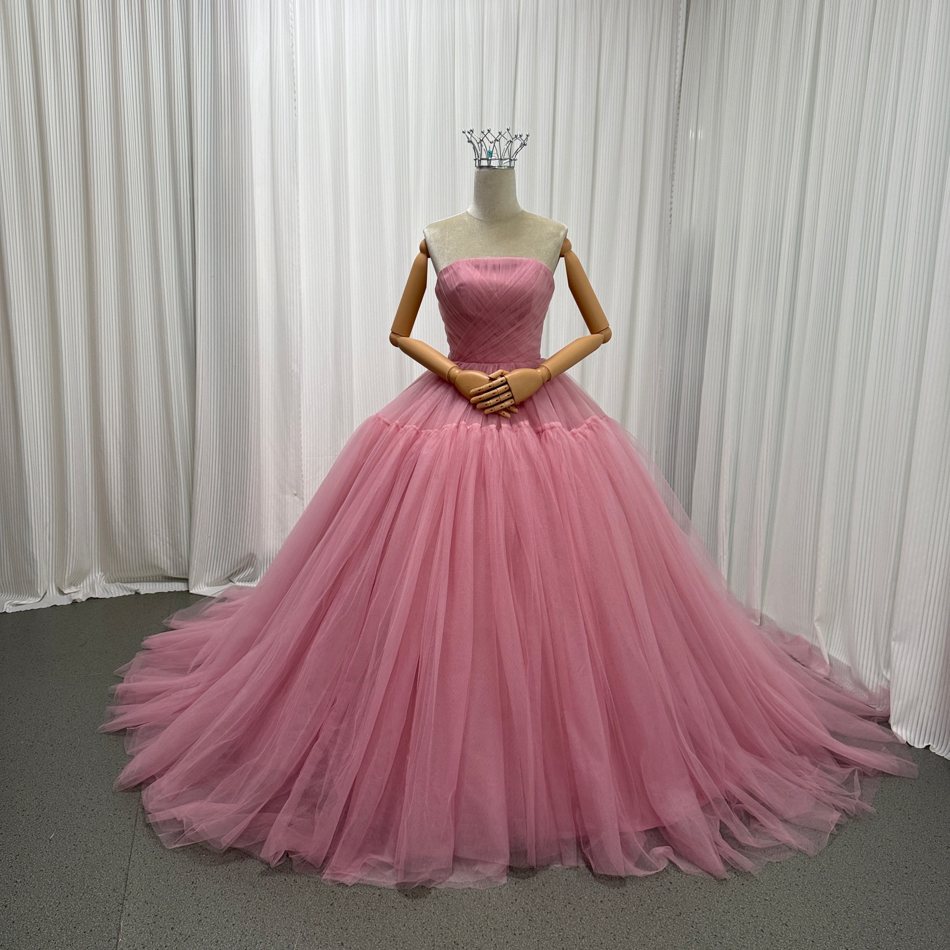 カラードレス ピンク ビスチェドレス ボリュームドレス 華やかなトレーン ソフトチュール 結婚式