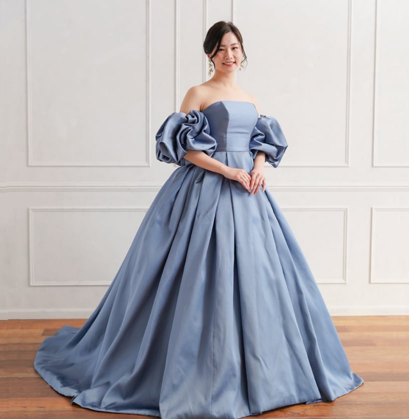 カラードレス 爽やかで優しいブルー 取り外し可能な付け袖 編み上げ 華やかなトレーン 演奏会/音楽会