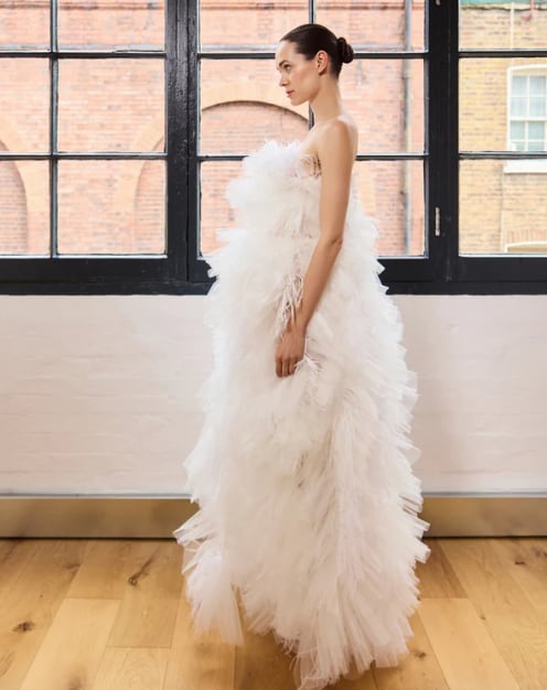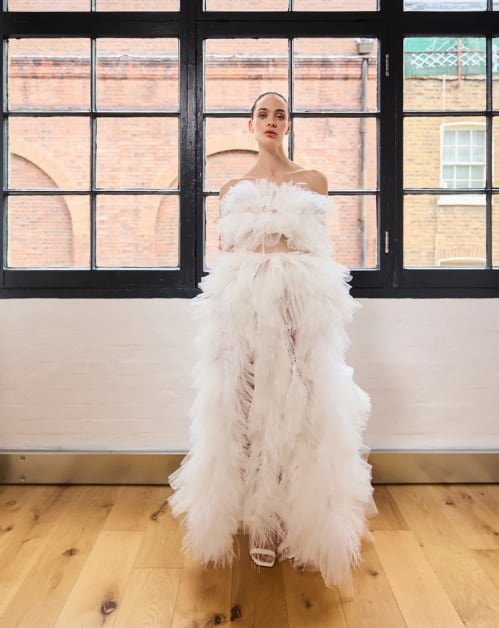 ウエディングドレス オフホワイト フェザー オートクチュール セクシー スレンダーライン 前撮り