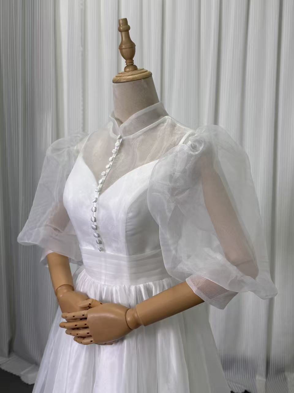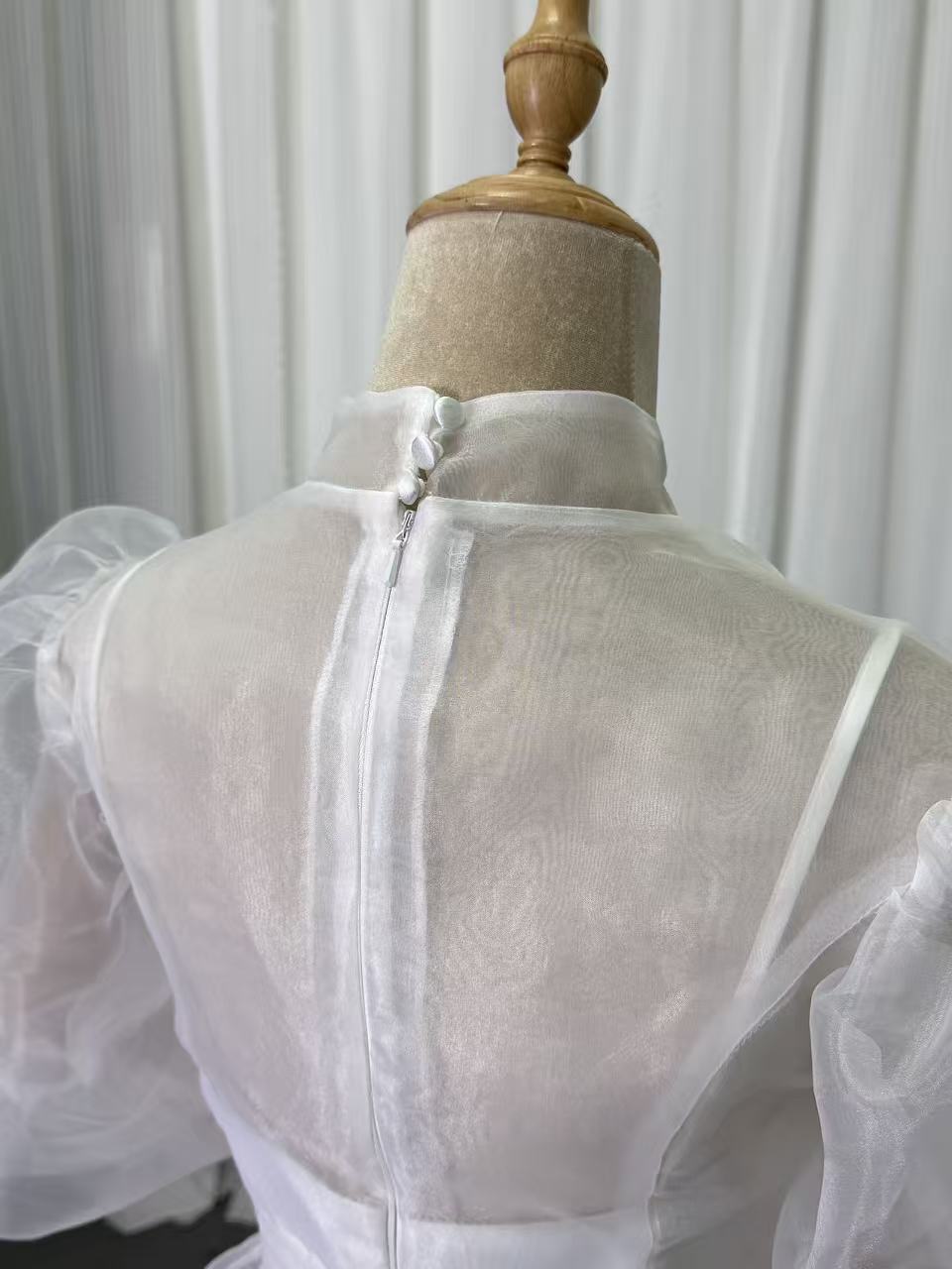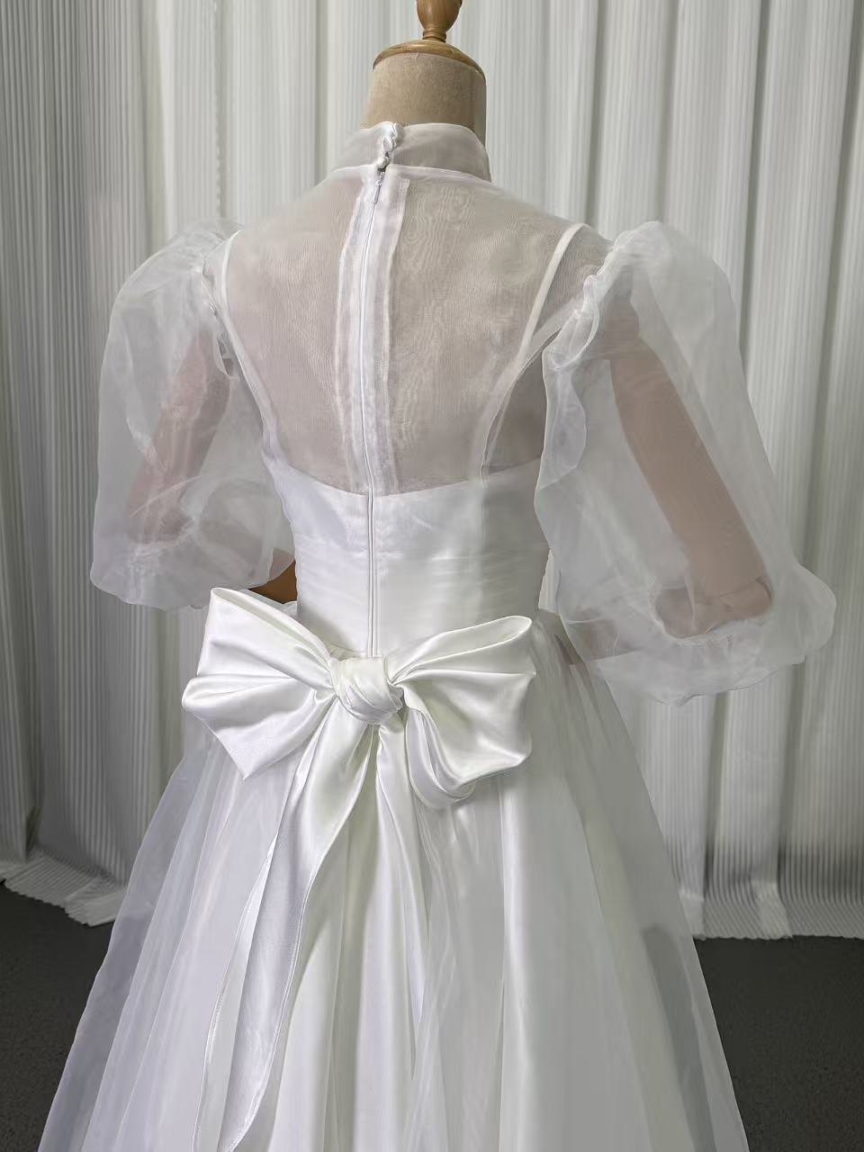 ウエディングドレス オフホワイト ロングスリーブ ファスナー ふっくら柔らかなバックリボン ロング 花嫁