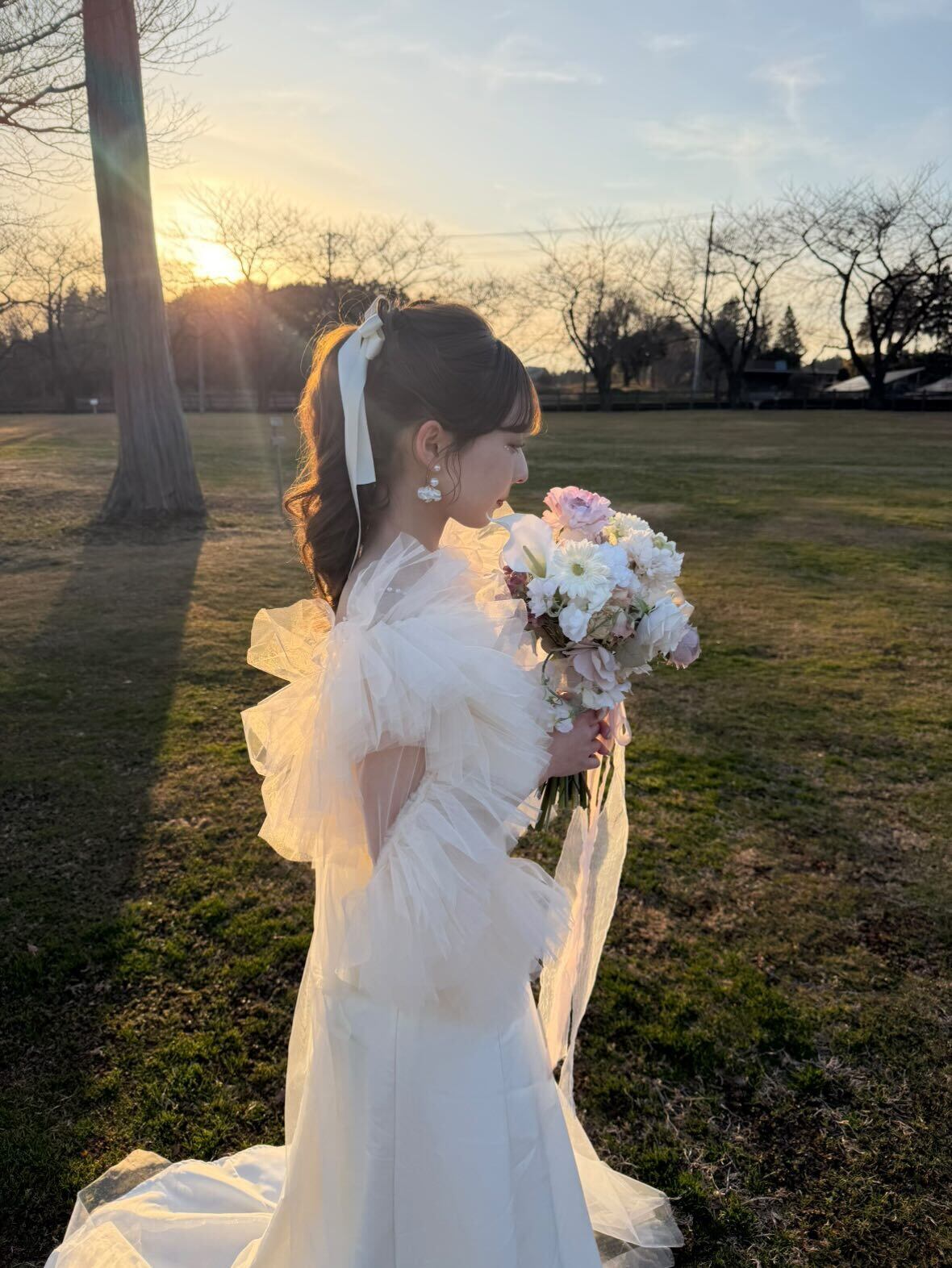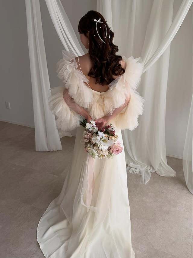 実例写真! ウエディングドレス オフホワイト パール キャミソール ツーピース 花嫁 前撮り