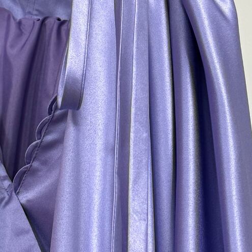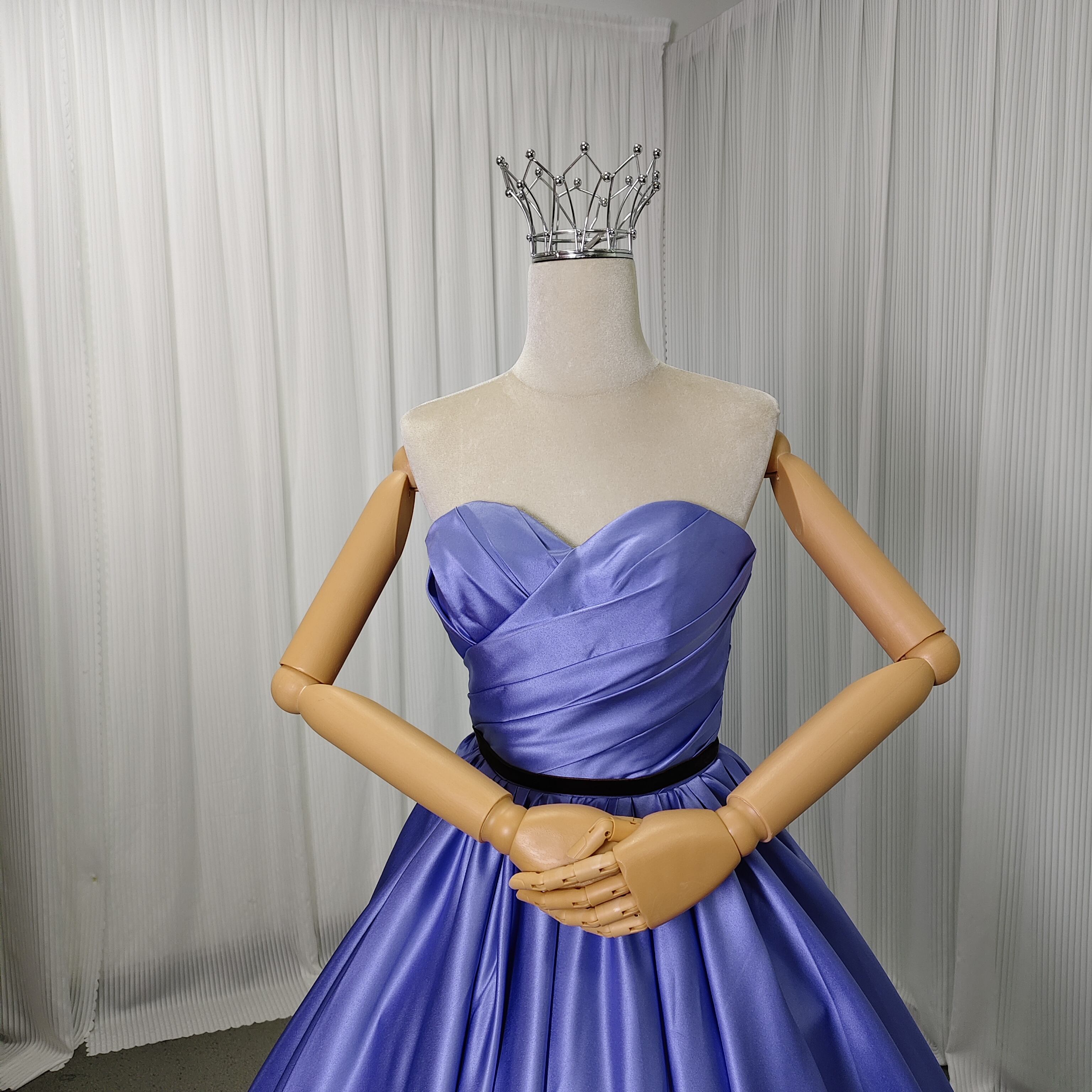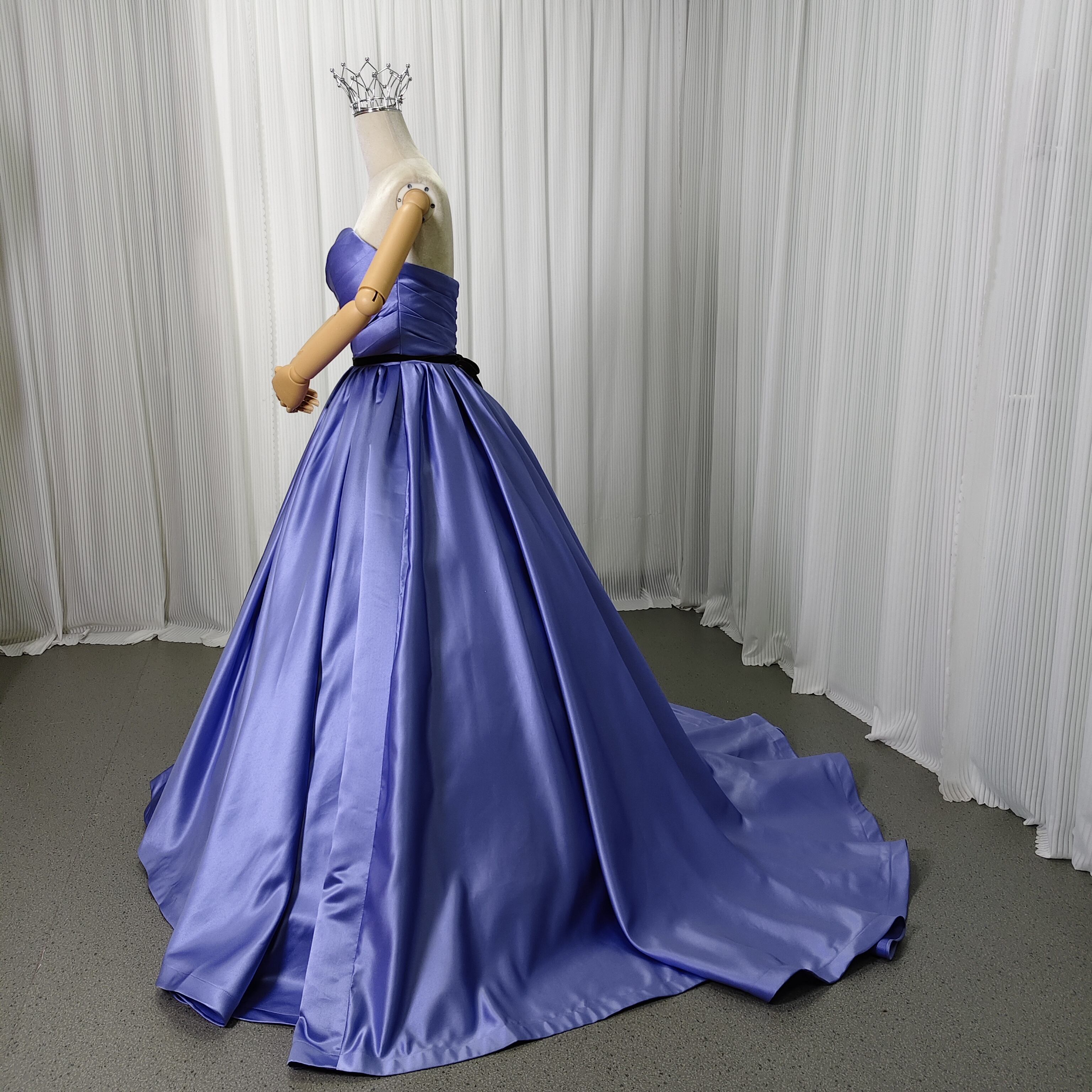 カラードレス パープル スリット サッシュベルト 光沢サテン 華やかなトレーン ビスチェドレス 花嫁