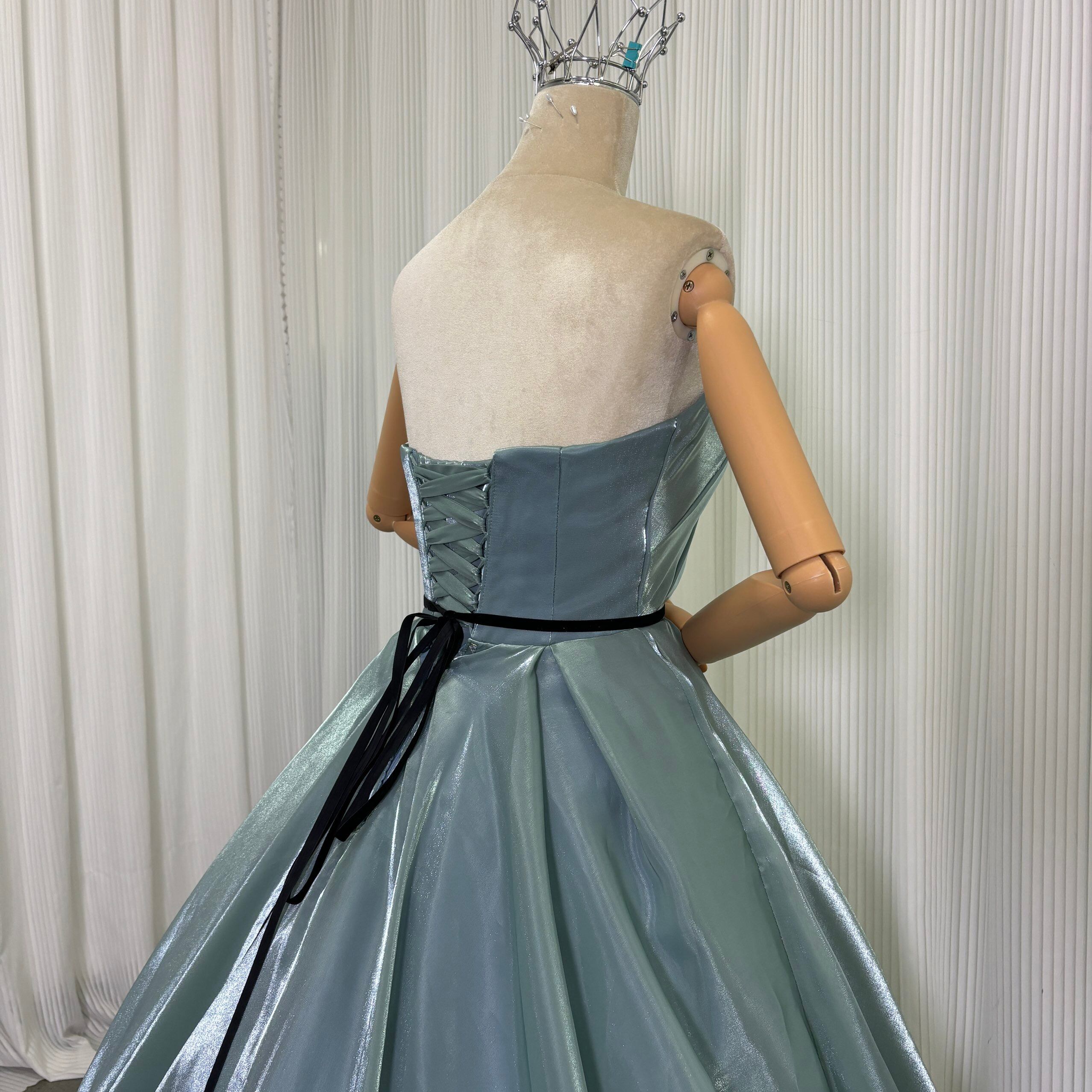 カラードレス グリーン ビスチェドレス ウェーブ スリット 編み上げ 華やかなトレーン 結婚式