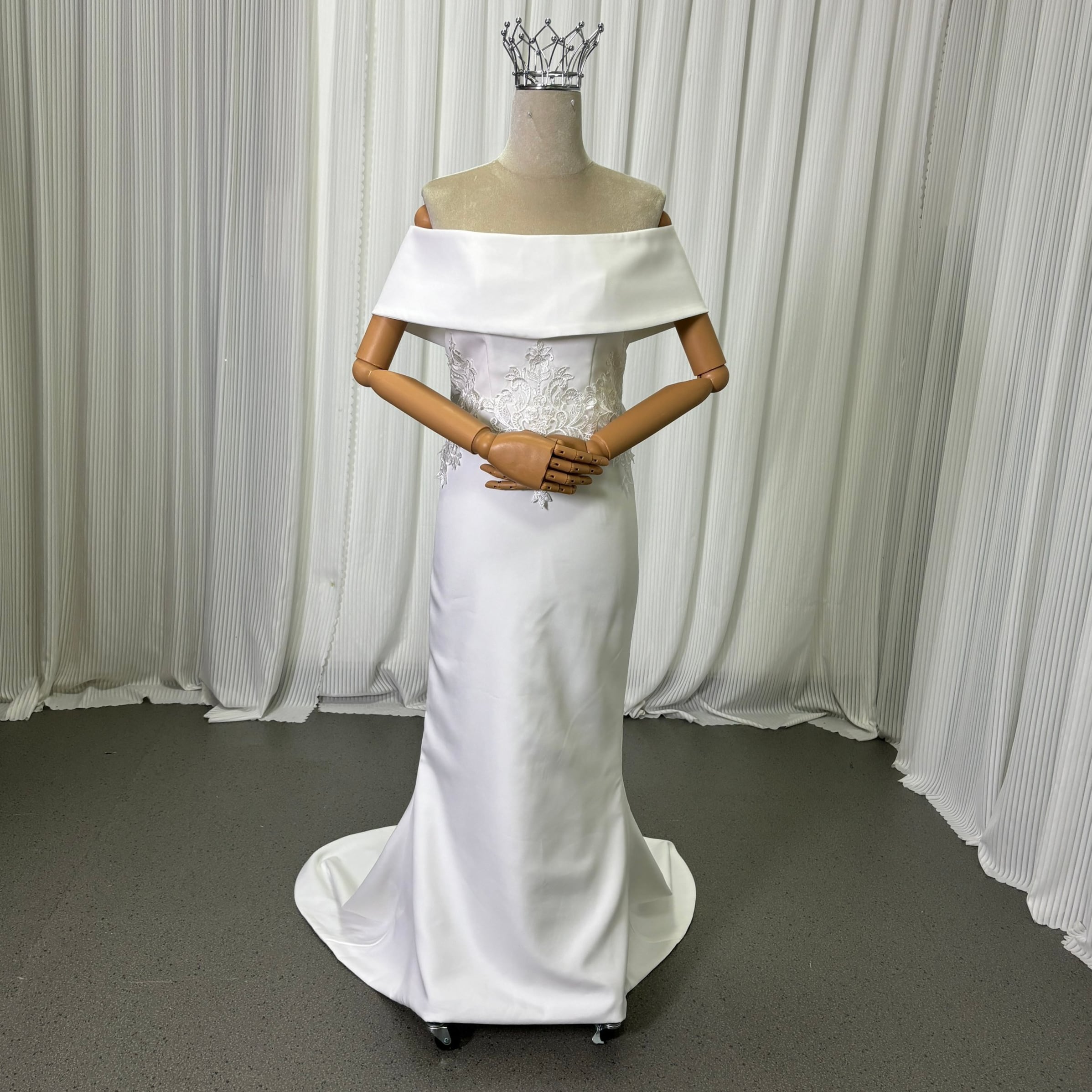 ウエディングドレス 取り外し可能なオフショルダー オフホワイト 繊細なレース 編み上げ+ファスナー ソフトマーメイドライン 結婚式