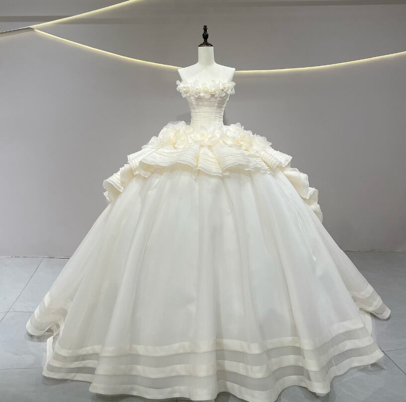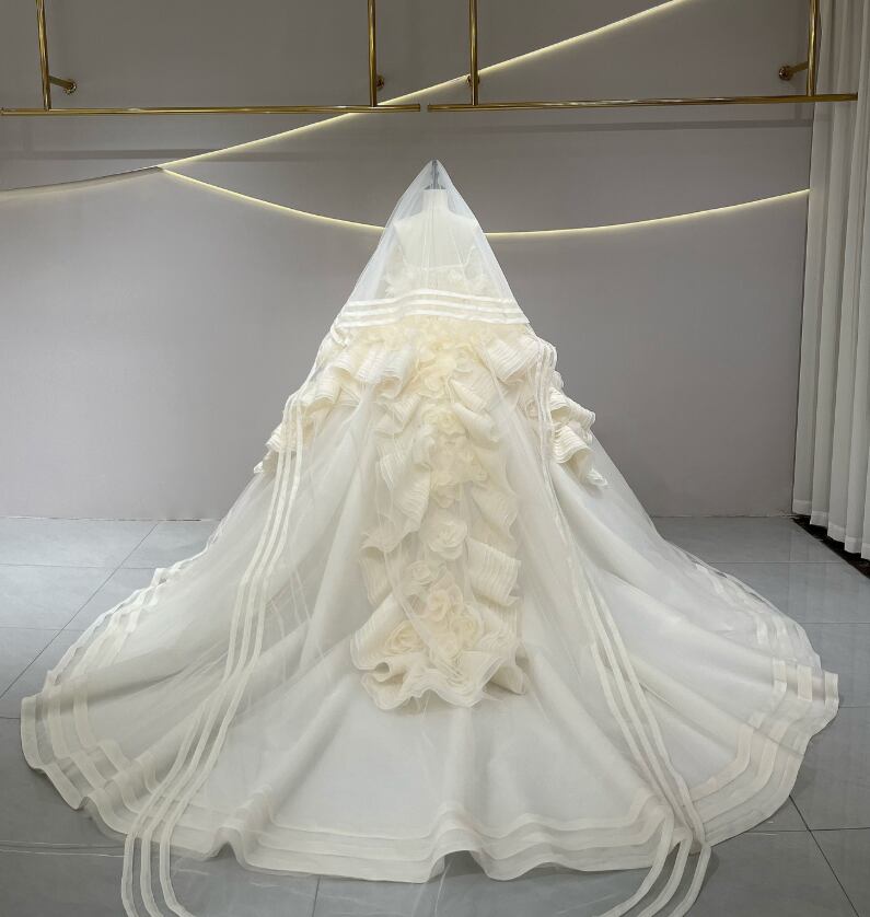 ウエディングドレス オフホワイト バラトレーン 韓国風ドレス 華やかなトレーン 憧れのドレス ブライダル