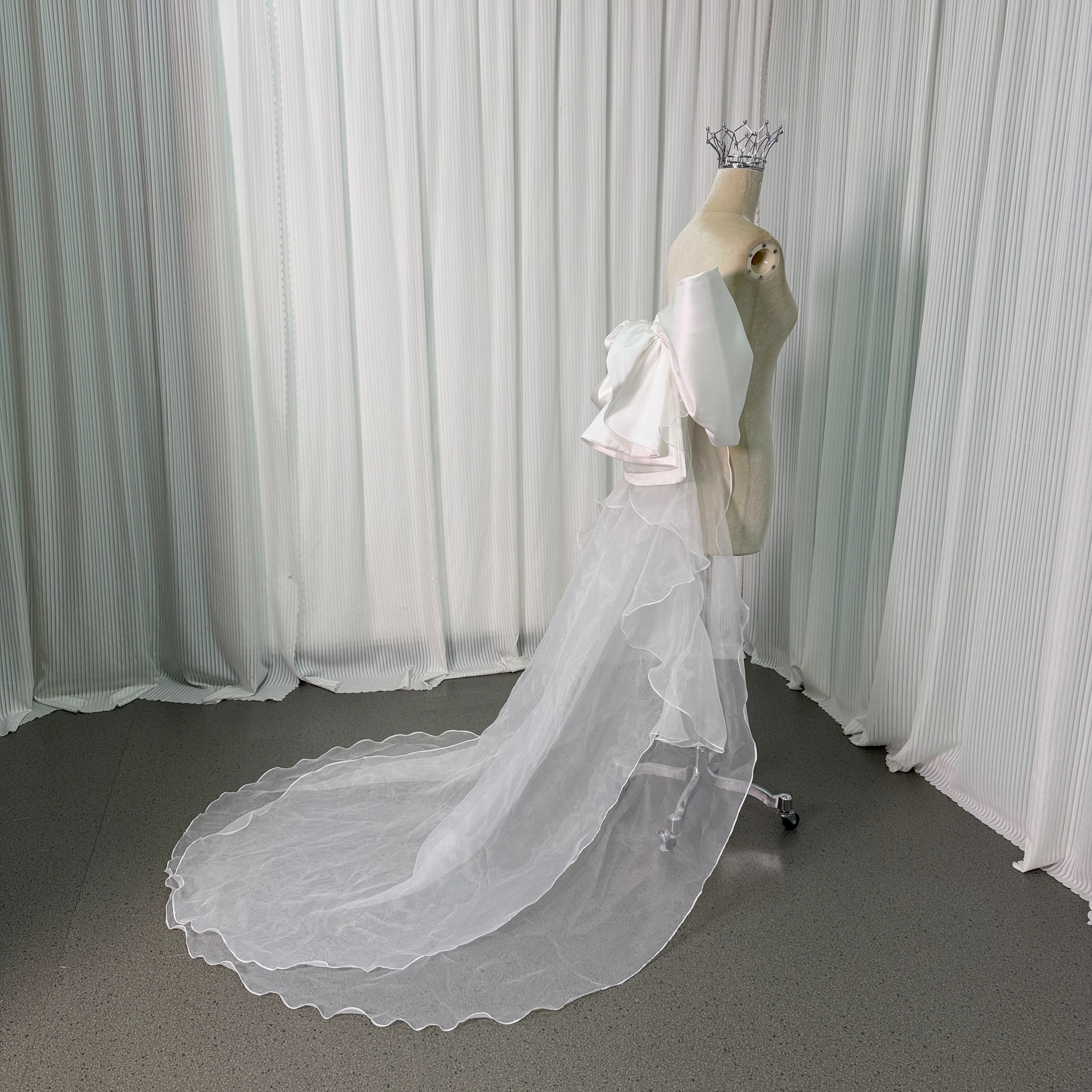 ふっくら柔らかなバックリボン オフホワイト 華やかなトレーン 色直し 花嫁