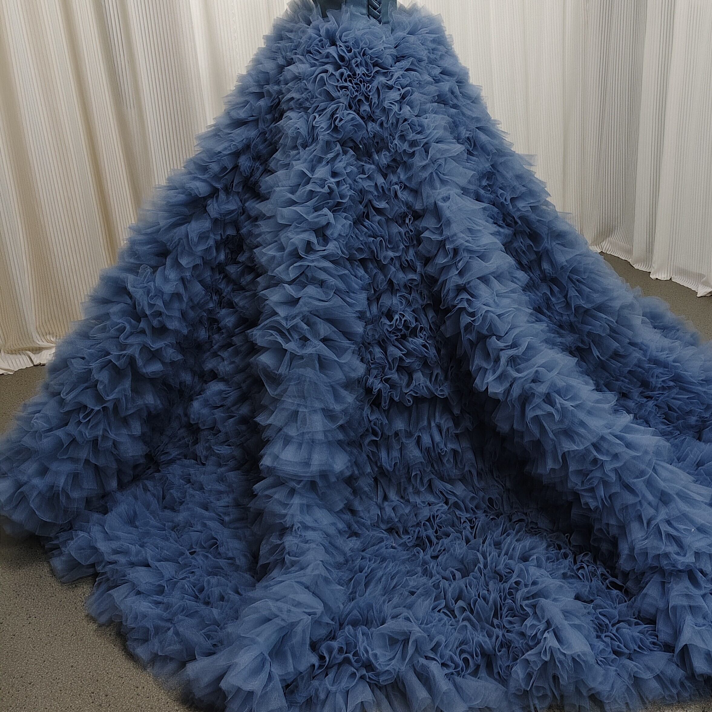 カラードレス ブルー もこもこドレス ビスチェドレス ミカドサテン 華やかなトレーン 結婚式