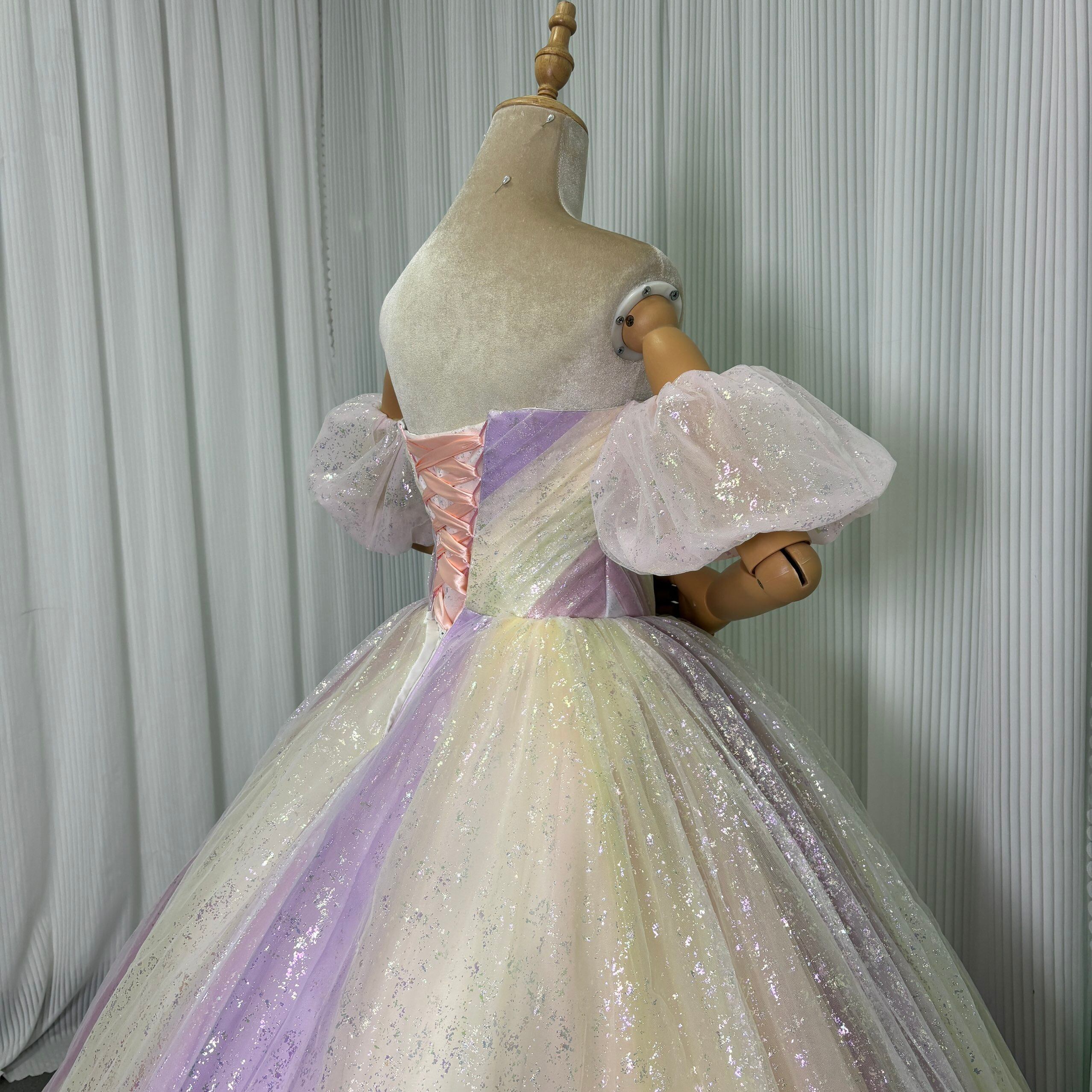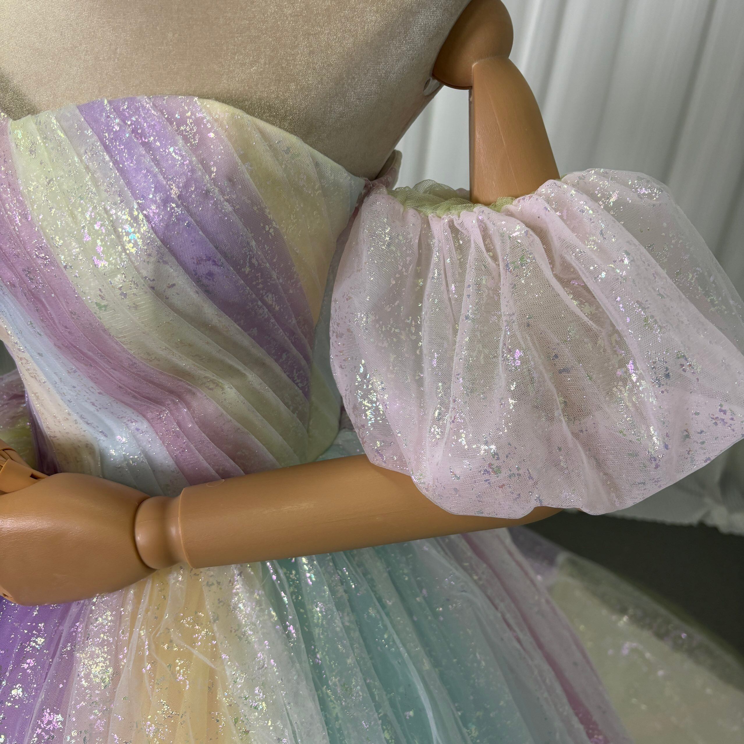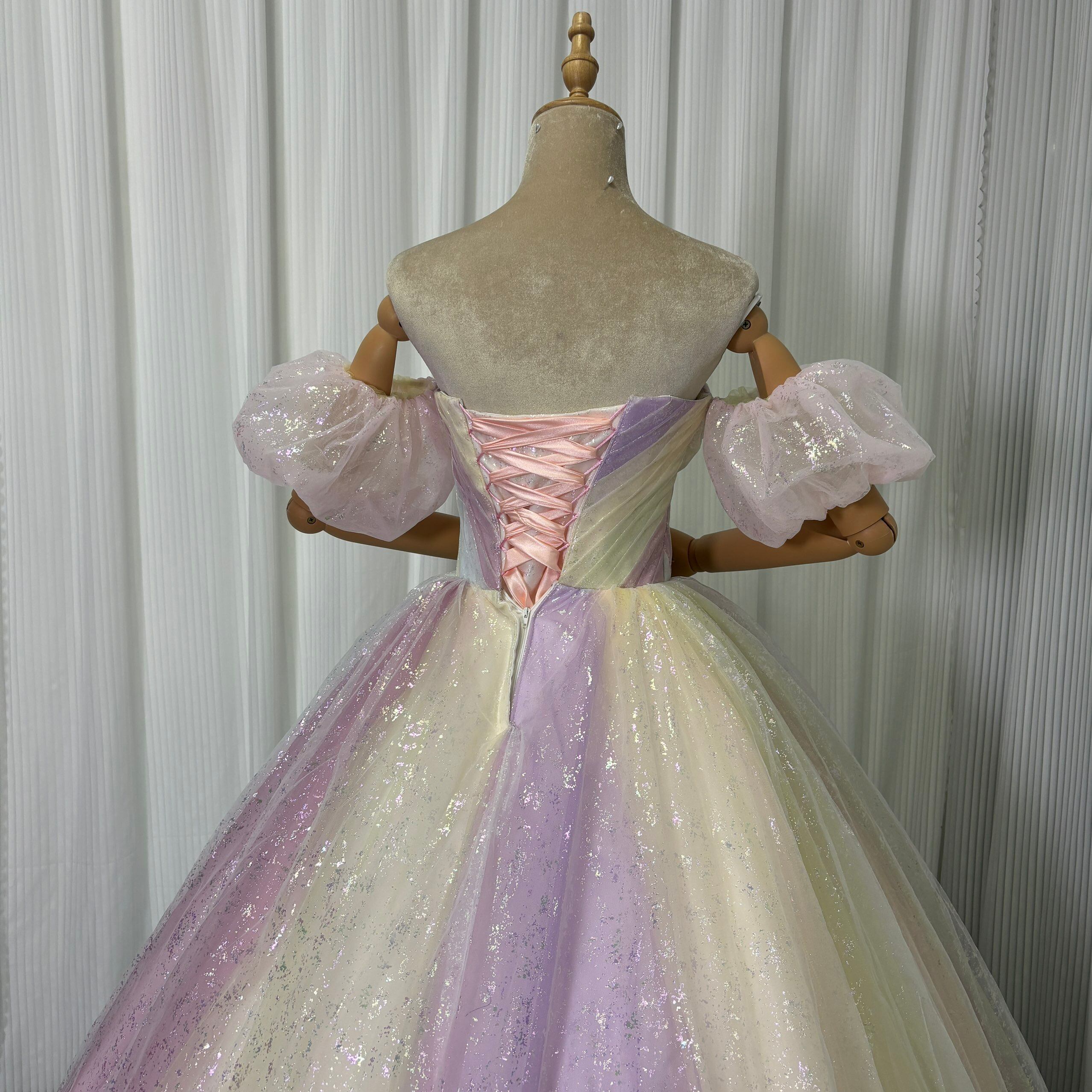 カラードレス レインボー 取り外し可能な付け袖 キラキラ光る刺繍 華やかなトレーン 編み上げ 花嫁 前撮り