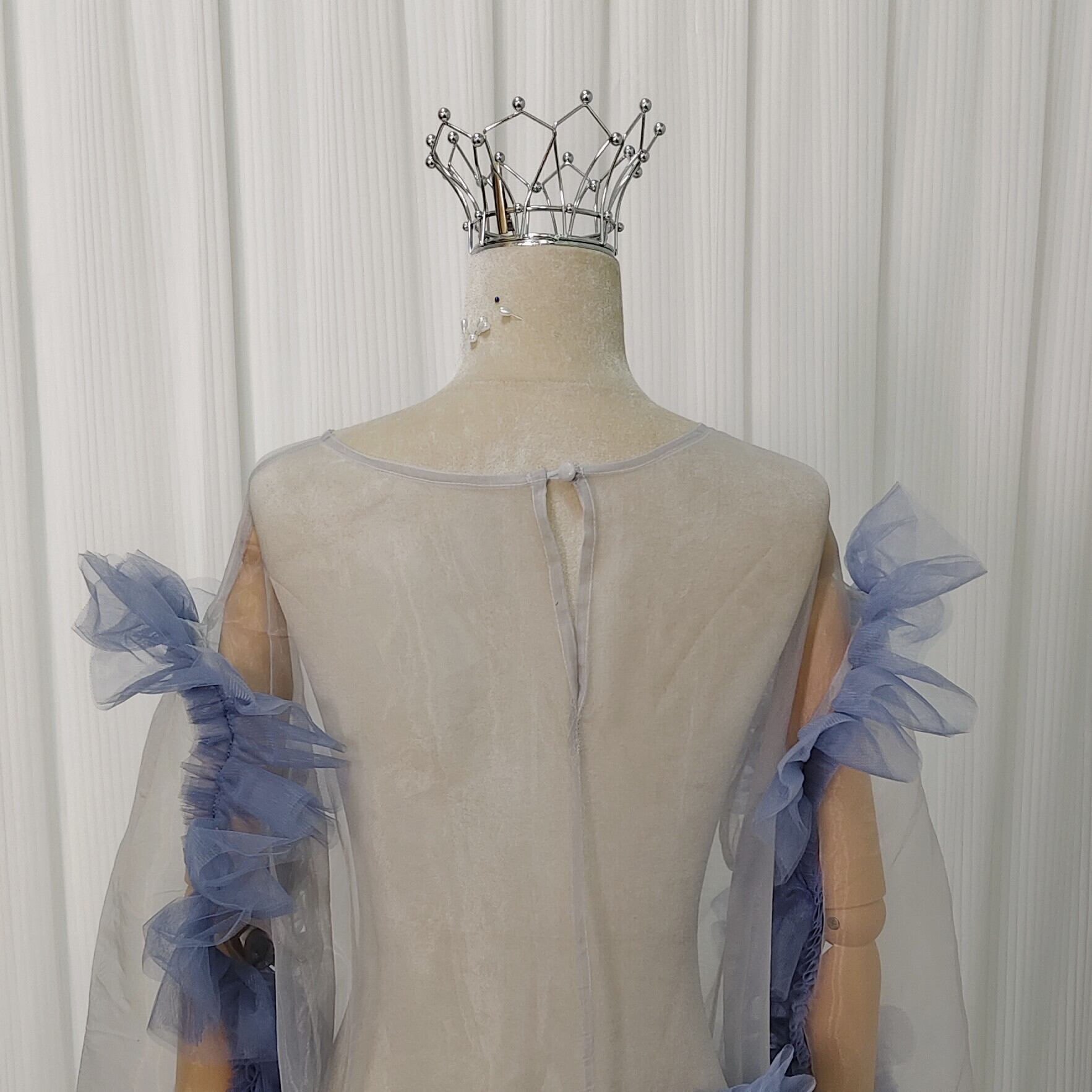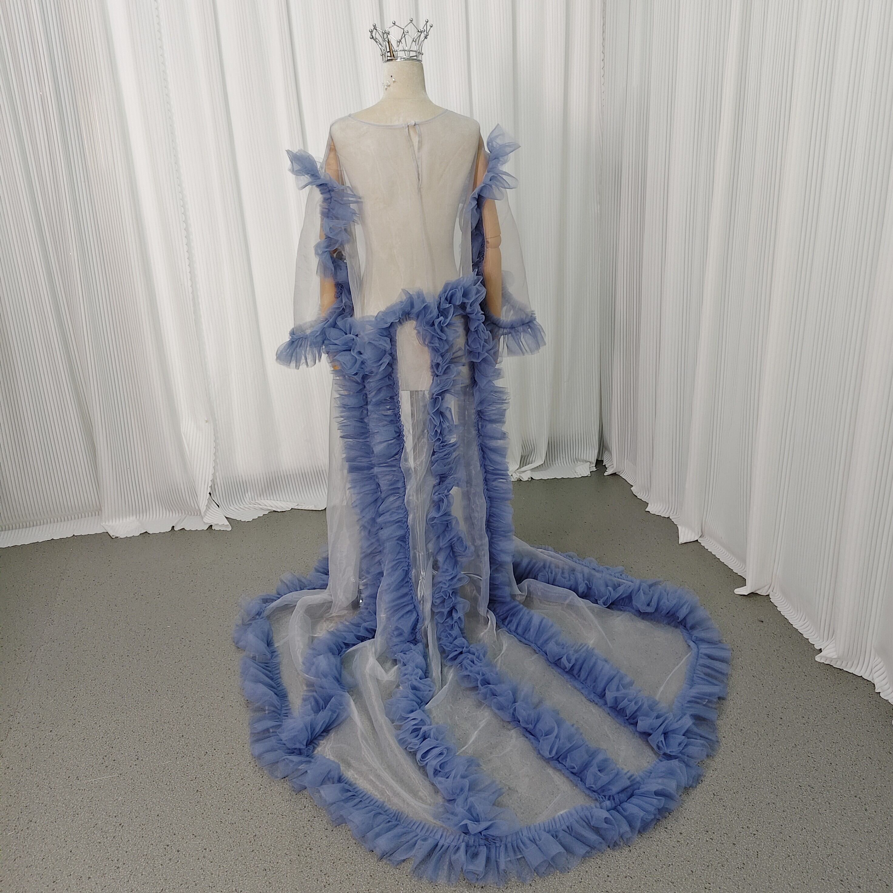 オーバードレス ブルー ロングスリーブ トレーン スリット ソフトチュール 花嫁 前撮り