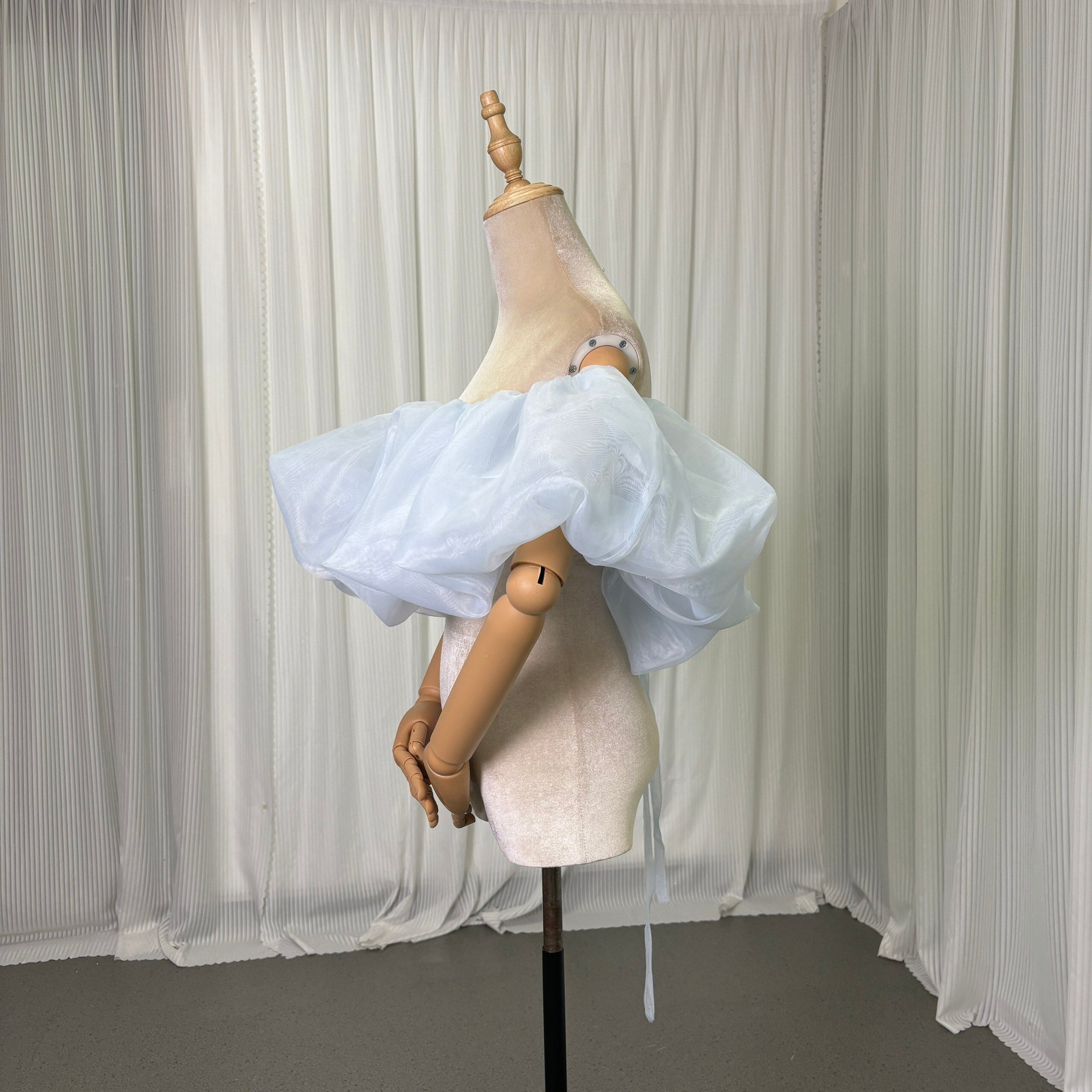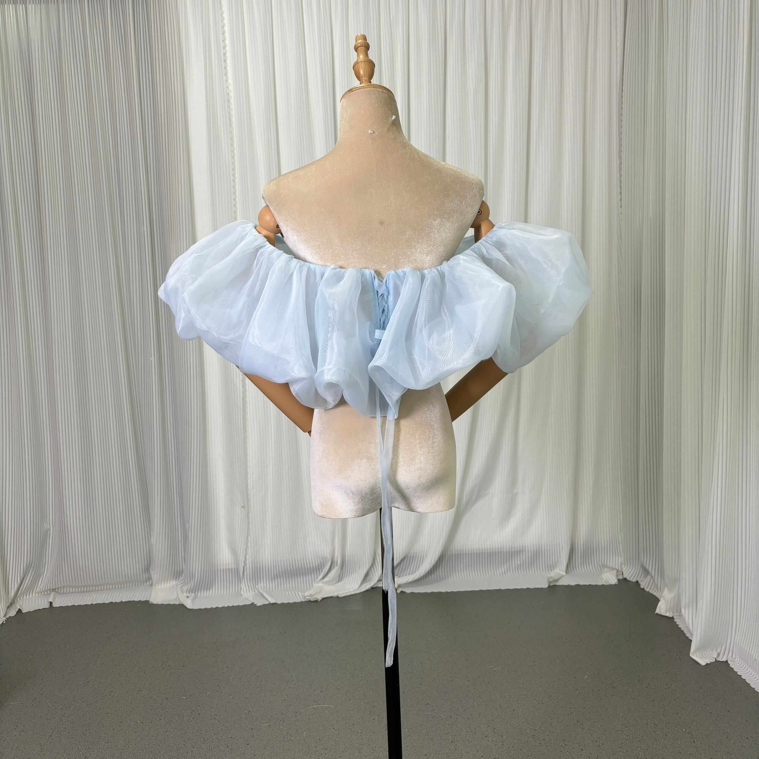 オフショルダー 爽やかで優しいブルー 上質オーガンジー 編み上げ 色直し 花嫁 前撮り