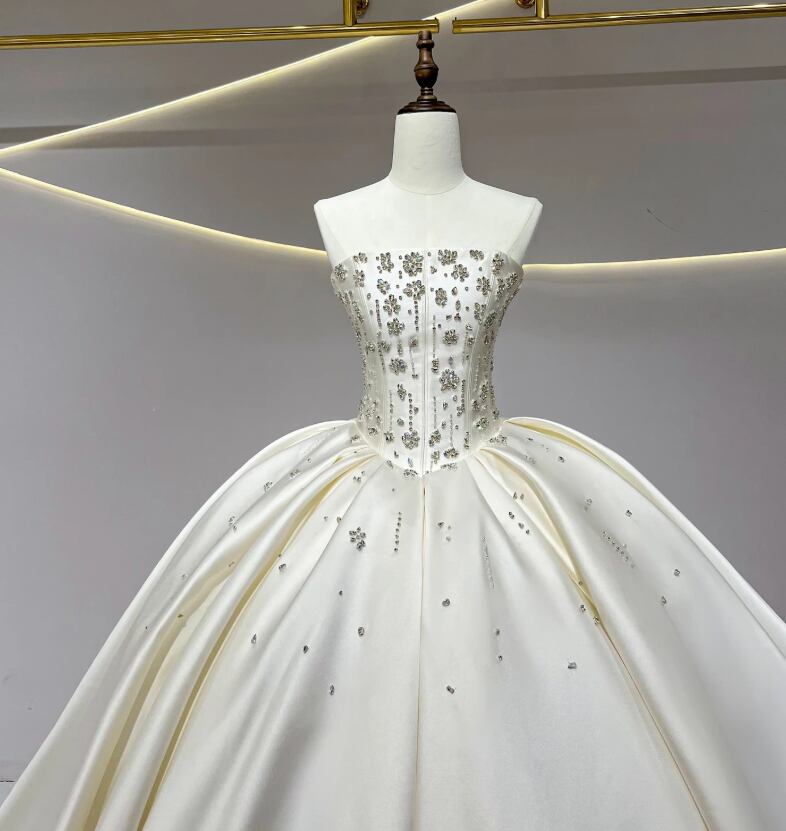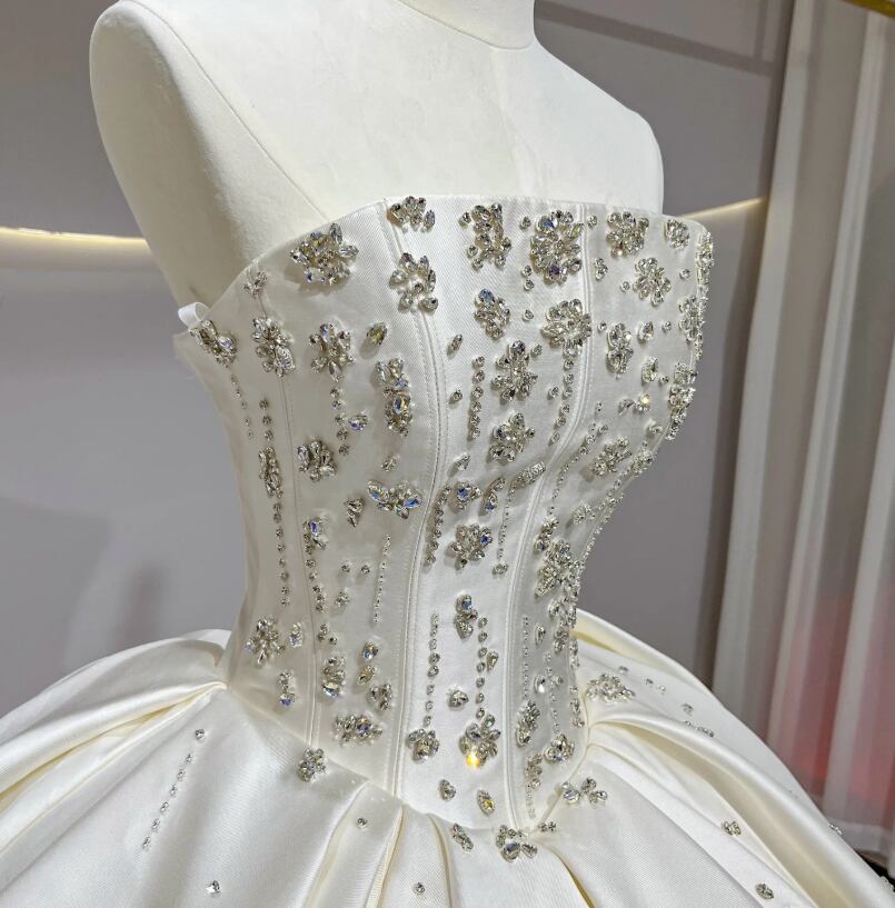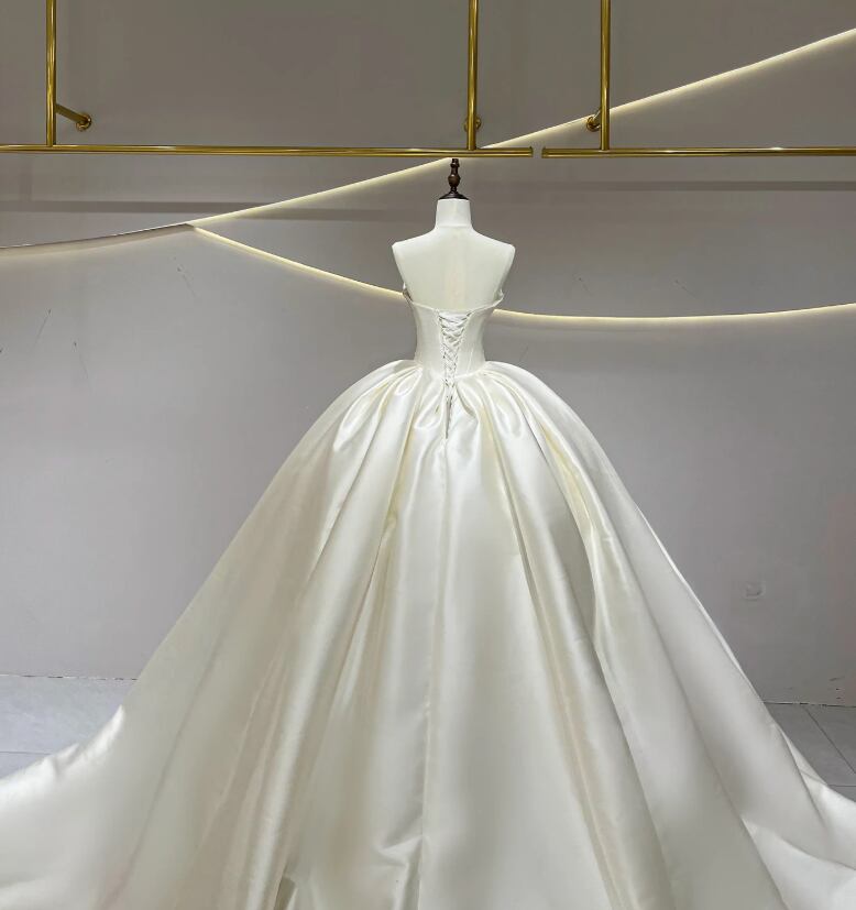 ウエディングドレス オフホワイト ソフトチュール 編み上げ 華やかなトレーン ビスチェドレス 花柄モチーフで刺繍が美しい ブライダル