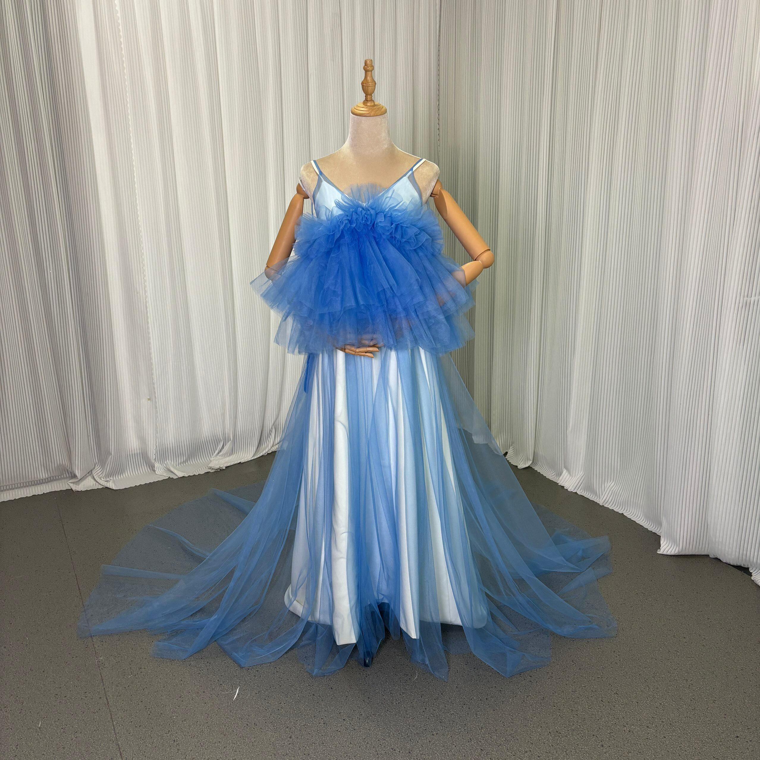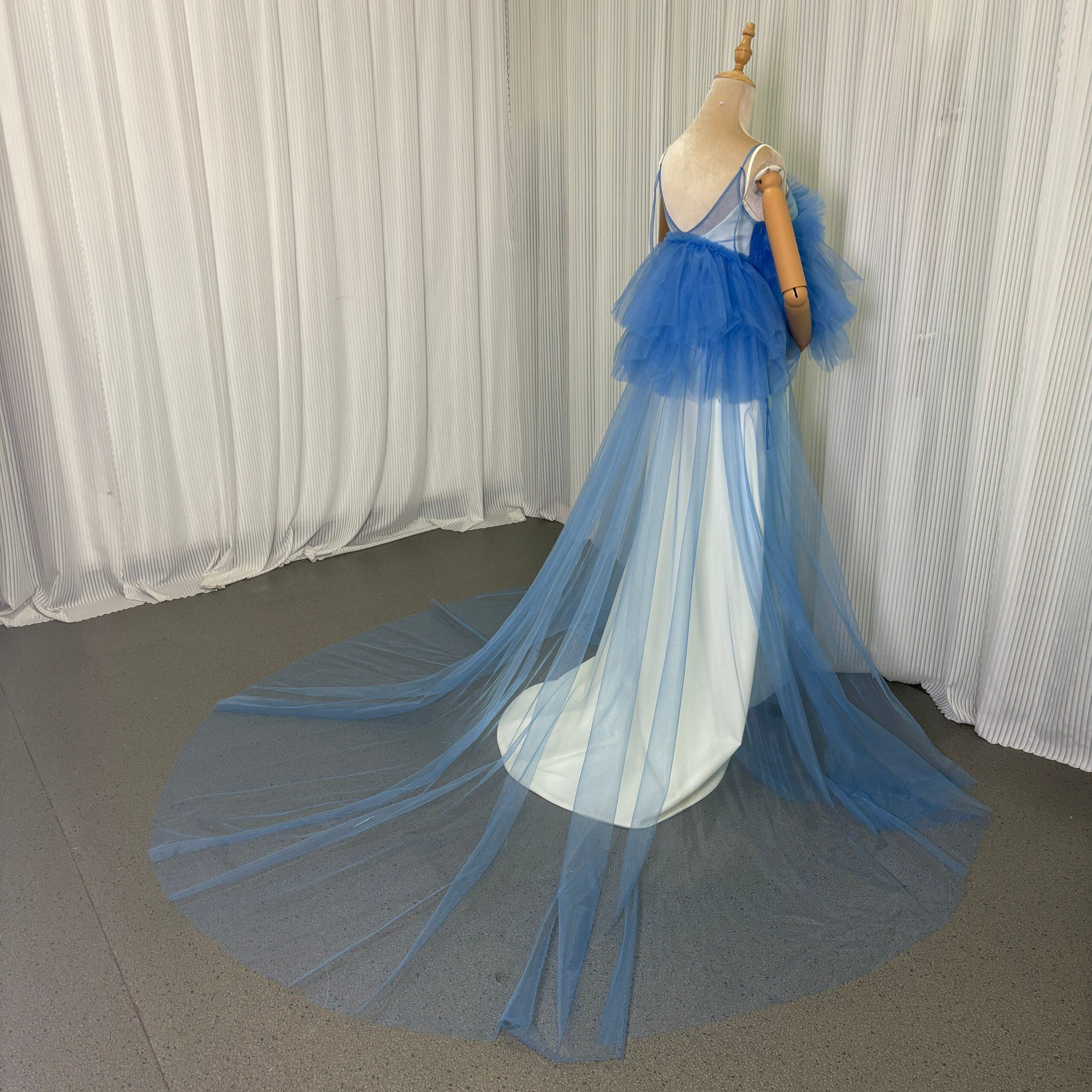 カラードレス ツーピース ブルー オーバードレス ソフトチュール+キャミソール ワンピース 花嫁 前撮り
