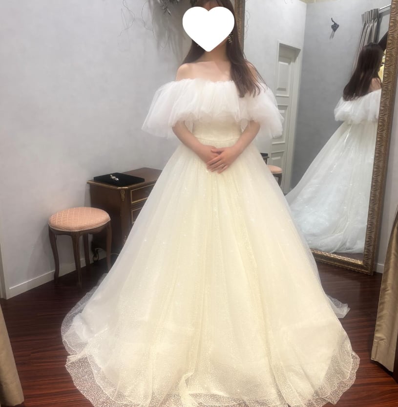 ウエディングドレス オフホワイト 取り外し可能なオフショルダー シークインチュール 華やかなトレーン 結婚式