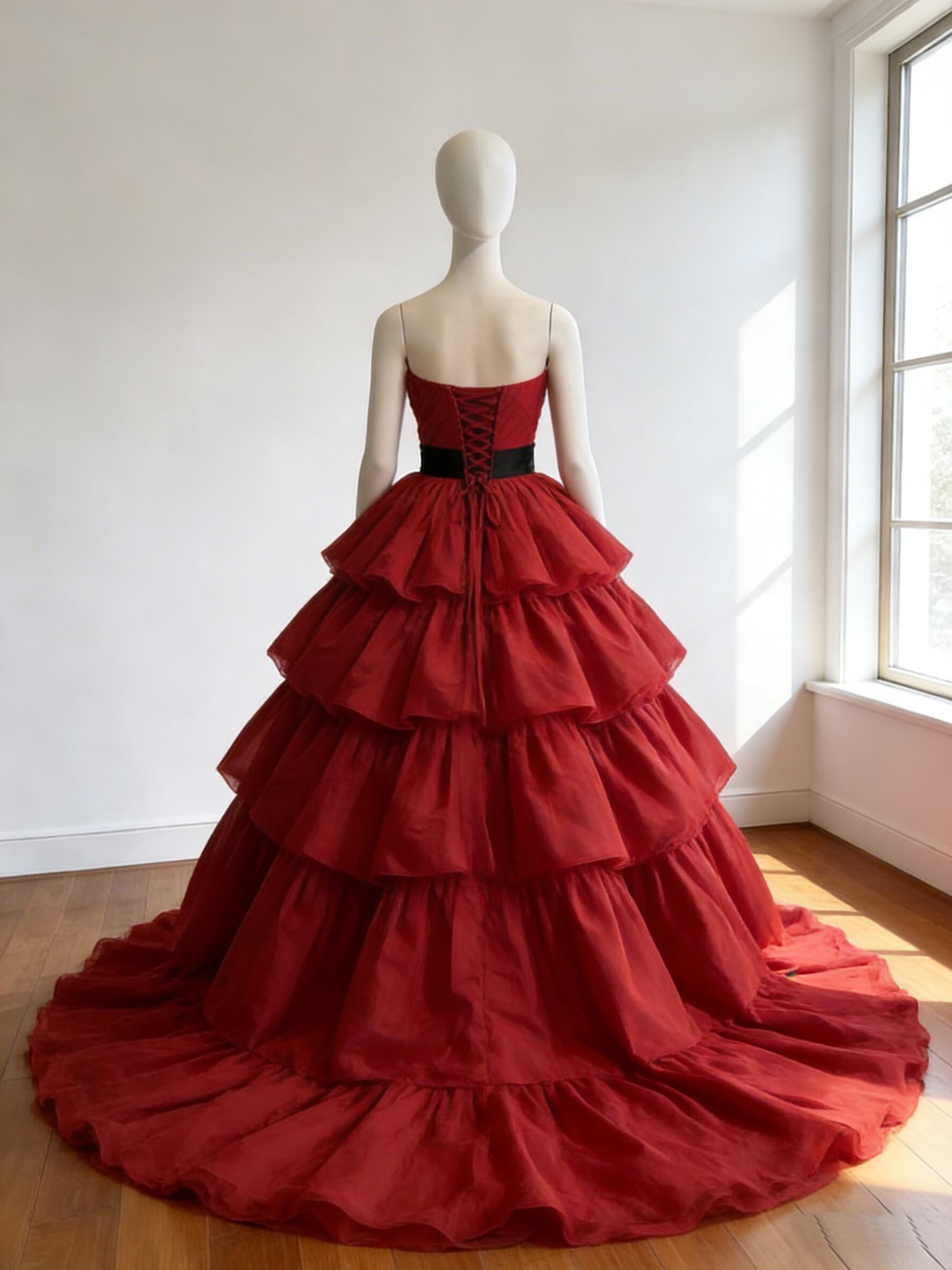 カラードレス ボルドー色 ビスチェドレス スリット シルクタフタ 編み上げ 華やかなトレーン 花嫁 前撮り