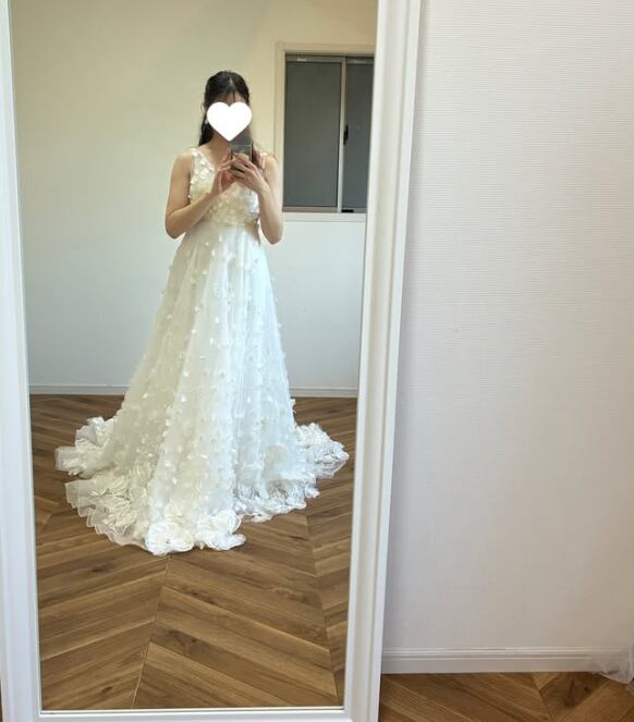 ウエディングドレス オフホワイト 繊細なレース 花モチーフ キャミソール 華やかなトレーン 結婚式 前撮り