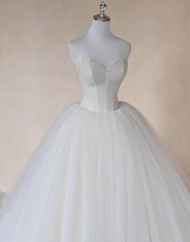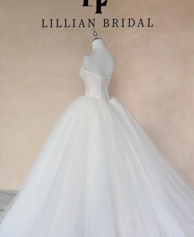 ウエディングドレス オフホワイト ソフトチュール 編み上げ 華やかなトレーン ビスチェドレス 結婚式