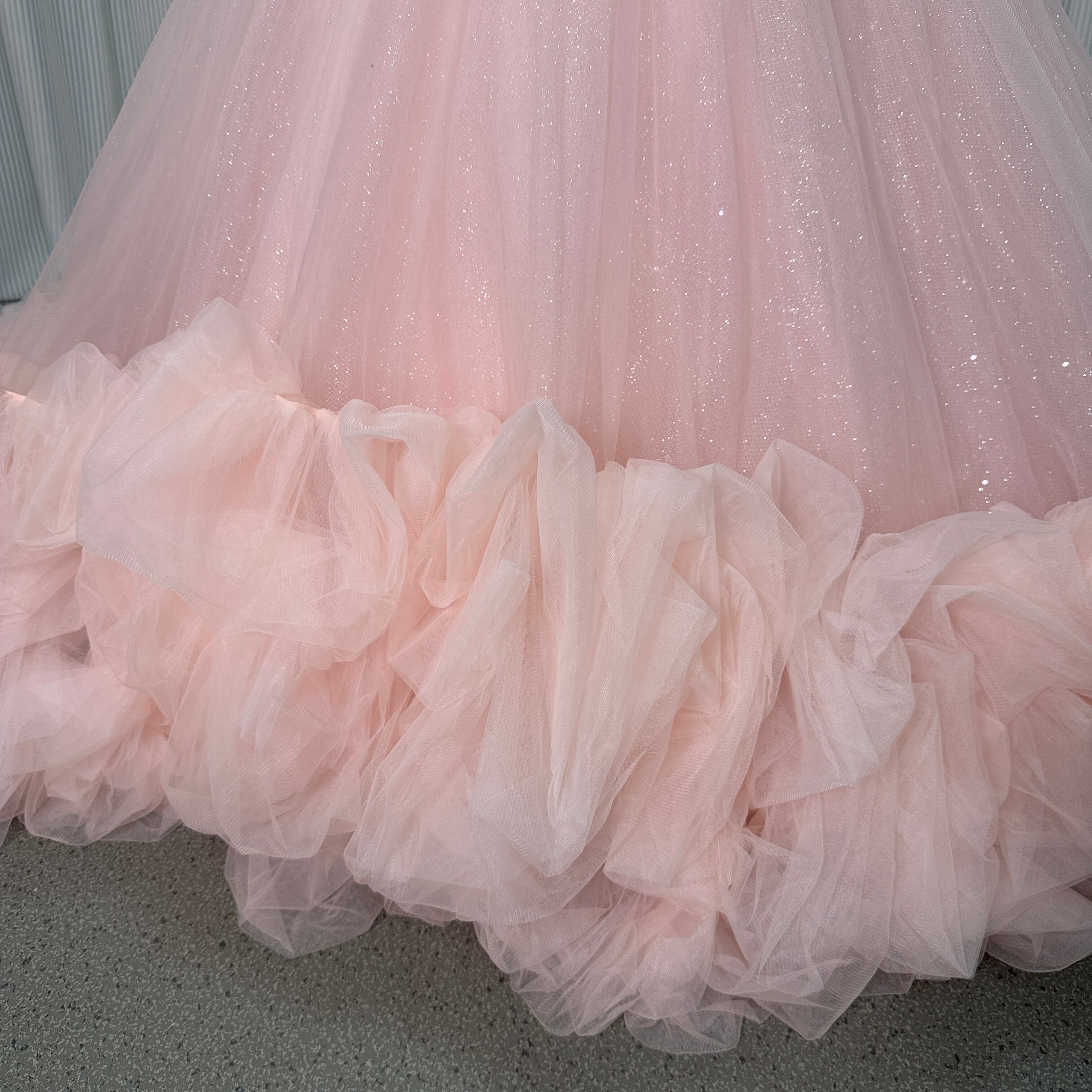 カラードレス ピンク ビスチェドレス シークインチュール ウェーブ 華やかなトレーン 結婚式