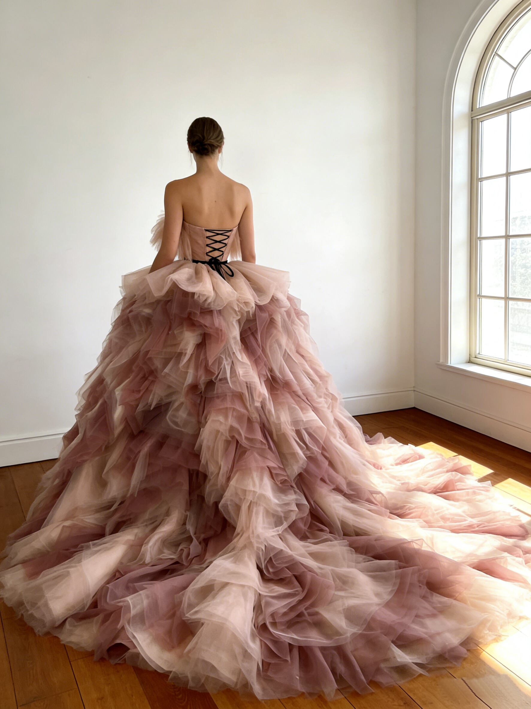 カラードレス 2色 ピンク ビスチェドレス ボリュームドレス 華やかなトレーン 花嫁 前撮り